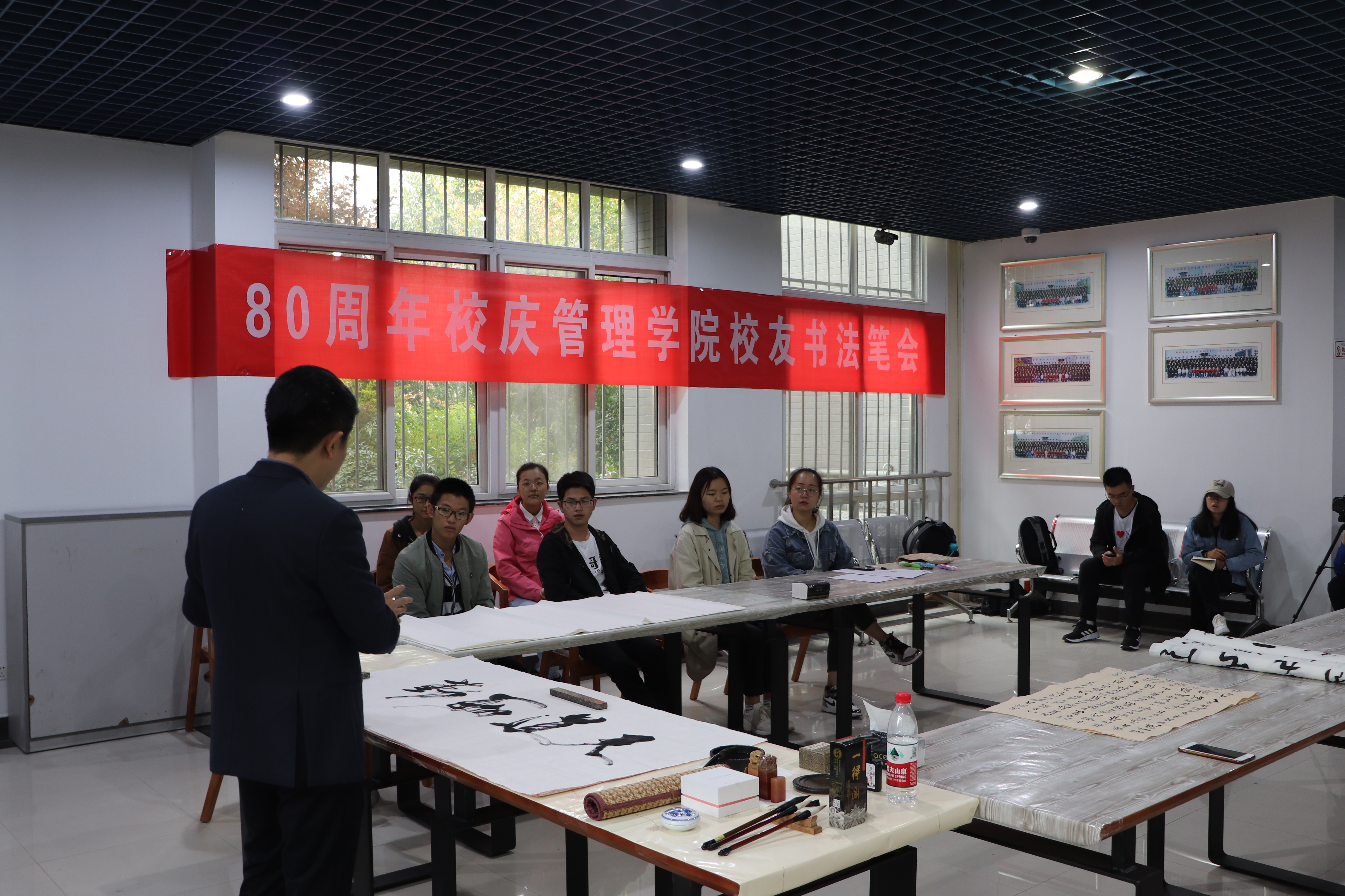 2018年10月14日下午3点,新葡的京集团35222vip在校友空间举办“校友书法笔会”活动,共贺学校80周年校庆。活动由新葡的京集团35222vip办公室主任周全主持,中华财险西安中支办公室主任,中国书画院会员,陕西金融书画家协会副秘书长,中国MBA联盟第十一届副主席兼秘书长,中国MBA西北联盟第十二届主席,我院2013级MBA校友余康受邀参加。