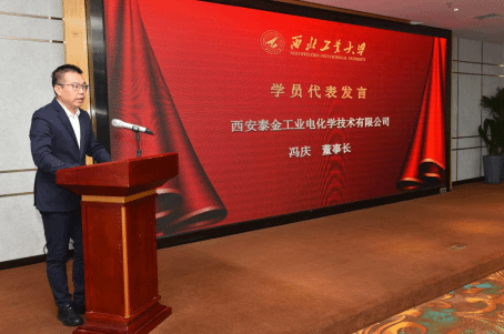 学员代表西安泰金工业电化学技术有限公司董事长冯庆发言,向关心支持与精心组织此次培训的省工信厅、西北工业大学和省中小企业人才服务中心的领导与老师表示衷心的感谢,并表示在今后的学习中“认真学习,遵守纪律;珍惜机会,提升交流;敢于创新,实现价值”。