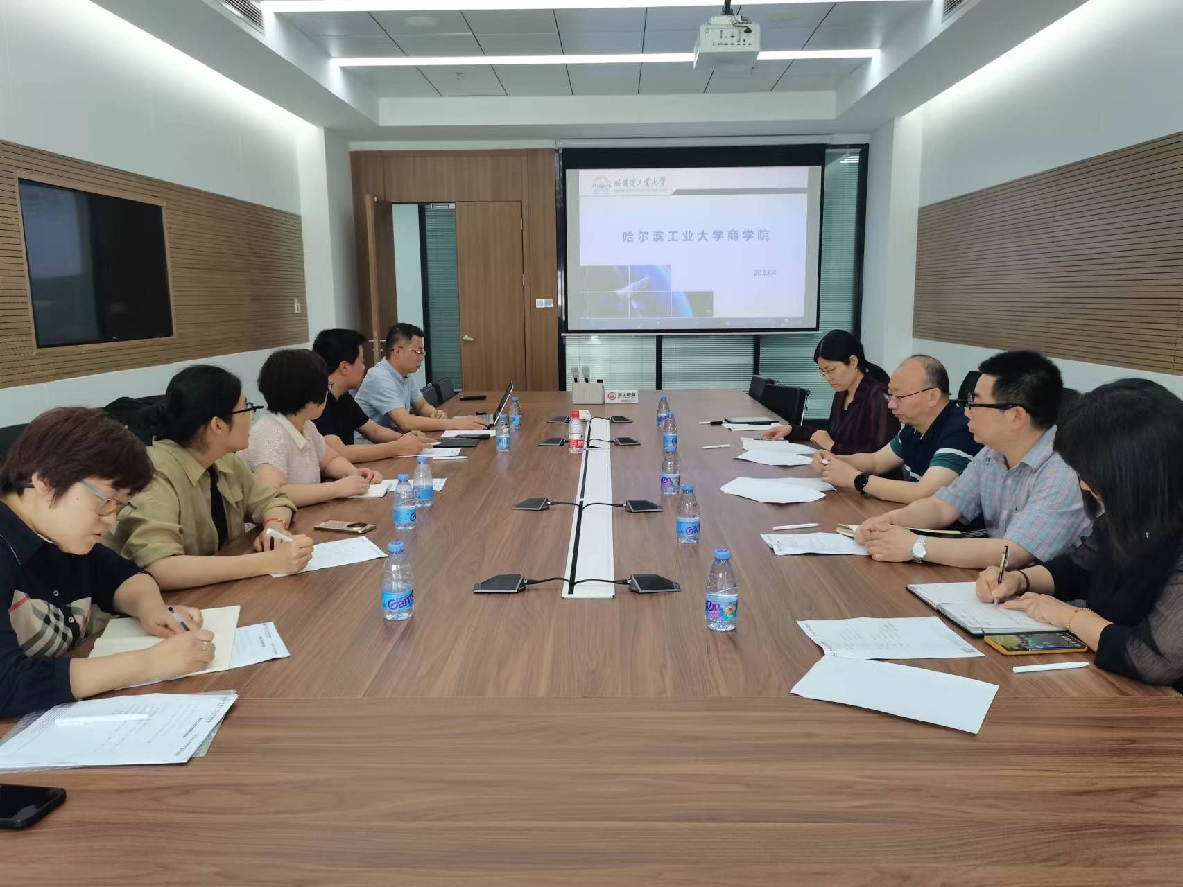 哈尔滨工业大学商学院教务部部长徐蕾、项目部长李宏宇、项目部项目主管邴岩、教务部学生主管贺磊鑫和乔祎参加调研交流。徐蕾部长致欢迎词,李宏宇部长从师资队伍、特色课堂、学生活动等方面全面介绍了商学院的情况。随后双方就招生、学生培养、导师制度、论文指导、案例撰写、实践活动开展等方面进行了全面深入的交流。