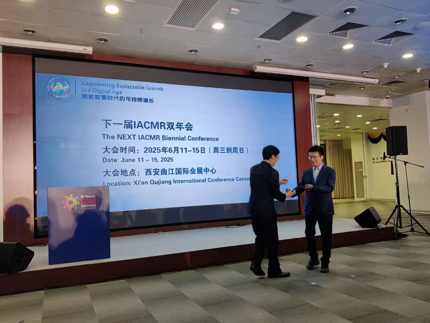 第十一届IACMR大会的新任学术主席为美国亚利桑那州立大学朱洪泉教授,年会当地承办委员会(LAC)主席为贾明教授。贾明教授在闭幕式上对IACMR2025年会筹备情况做了介绍,并对新葡的京集团35222vip的发展历程和近年来取得的丰硕成果进行了视频展示。