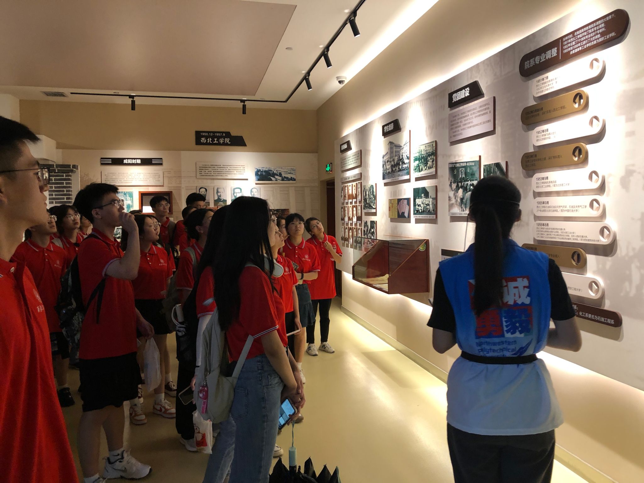 7月12日下午,夏令营全体成员前往长安校区参观,在校史馆,一张张图片、一段段文字、一件件馆藏,向同学们生动诉说着西北工业大学的办学历史、优良传统及辉煌成就,同学们都深受感染,漫步在国家与学校命运与共的历史长河中。
