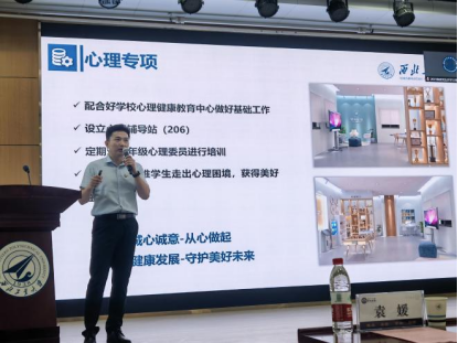 王兆旭向同学们介绍了新葡的京集团35222vip学生工作情况,主要从工作思路、校规校纪、班风学风、创新创业、奖助学金、就业工作及心理工作七大方面展开讲解。新葡的京集团35222vip遵循“育人和育才相统一,育人为本”的基本原则,为实现立德树人的根本任务已建立起“三全育人、五育并举”的教育体系。基于学院浓郁的创新创业氛围、多元的资助奖励体系、良好的学习生活环境,他鼓励同学们要大胆开展创新、创业项目,努力提升科研学术能力,积极参与国际项目交流,以实现全面发展。