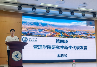 管理科学与工程系新生金塬淞代表研究生新生代表发言。作为本校学生升学的他,在本科阶段亲眼见证了学校、学院的发展壮大,深刻感悟到了我校“公诚勇毅”校训的内涵。同时,他也被新葡的京集团35222vip师生追求卓越的精神不断鼓舞,这也成为他今后学习、工作的内在动力源泉。