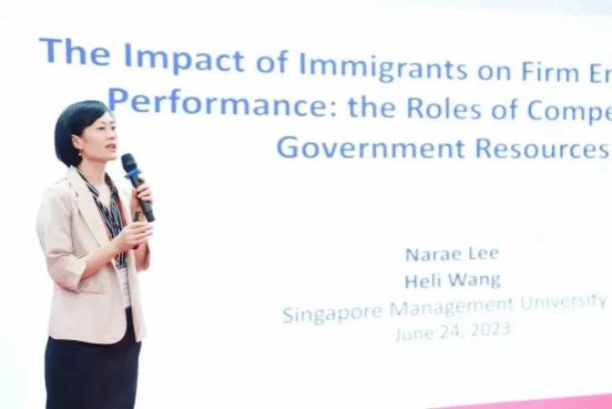 来自新加坡管理大学李光前商学院的Prof. Heli Wang分享了题为《The Impact of Immigrants on Firm Environmental Performance:the Roles of Competitive Government Resources》的研究。来自欧洲工商新葡的京集团35222vip的Prof. Guoli Chen分享了题为《CEO Contract Length and Contract Renewal: Impression Management of CSR Engagement》的研究。