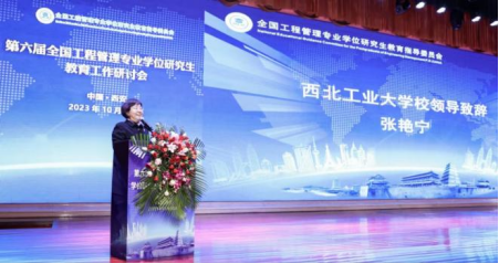 张艳宁致欢迎词,她对各位参会嘉宾表示热烈欢迎和衷心感谢,并向与会人员介绍了西北工业大学建校85年以来,在聚焦国家战略需求和世界科技前沿方面做出的贡献及取得的成就,以及学校MEM项目的建设发展情况,希望通过本次研讨会为学校工程管理专业学位教育的高质量发展提供新思路,最后预祝本次会议取得圆满成功。
