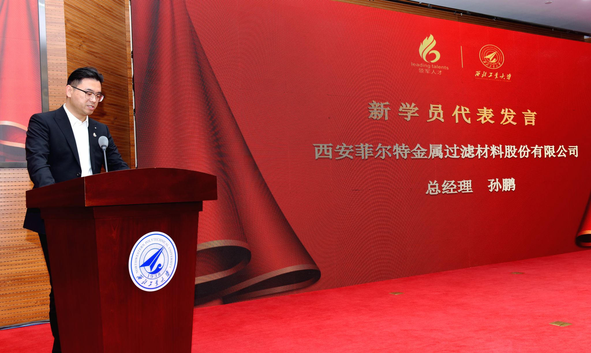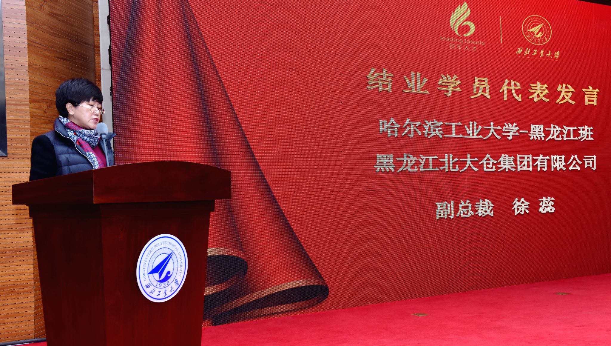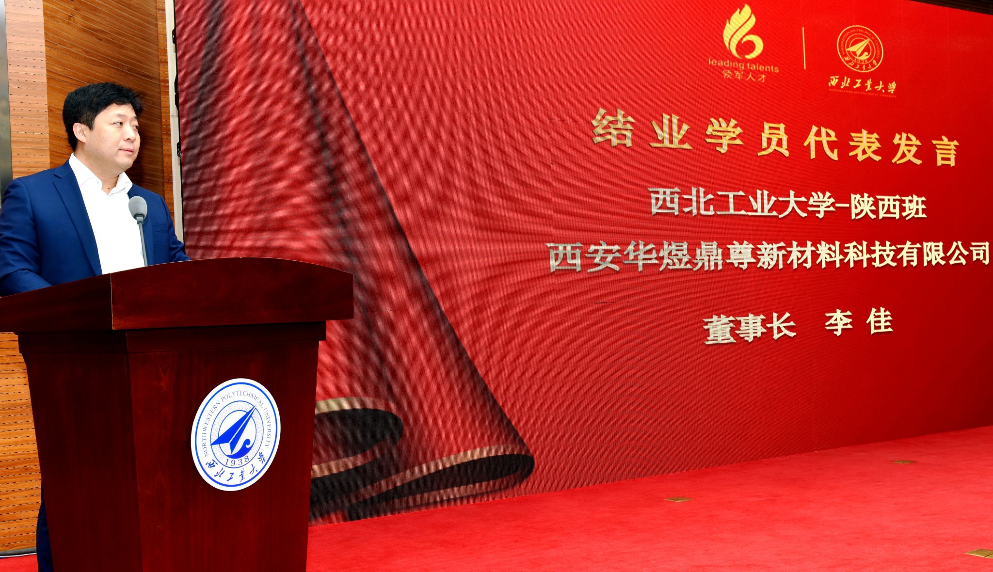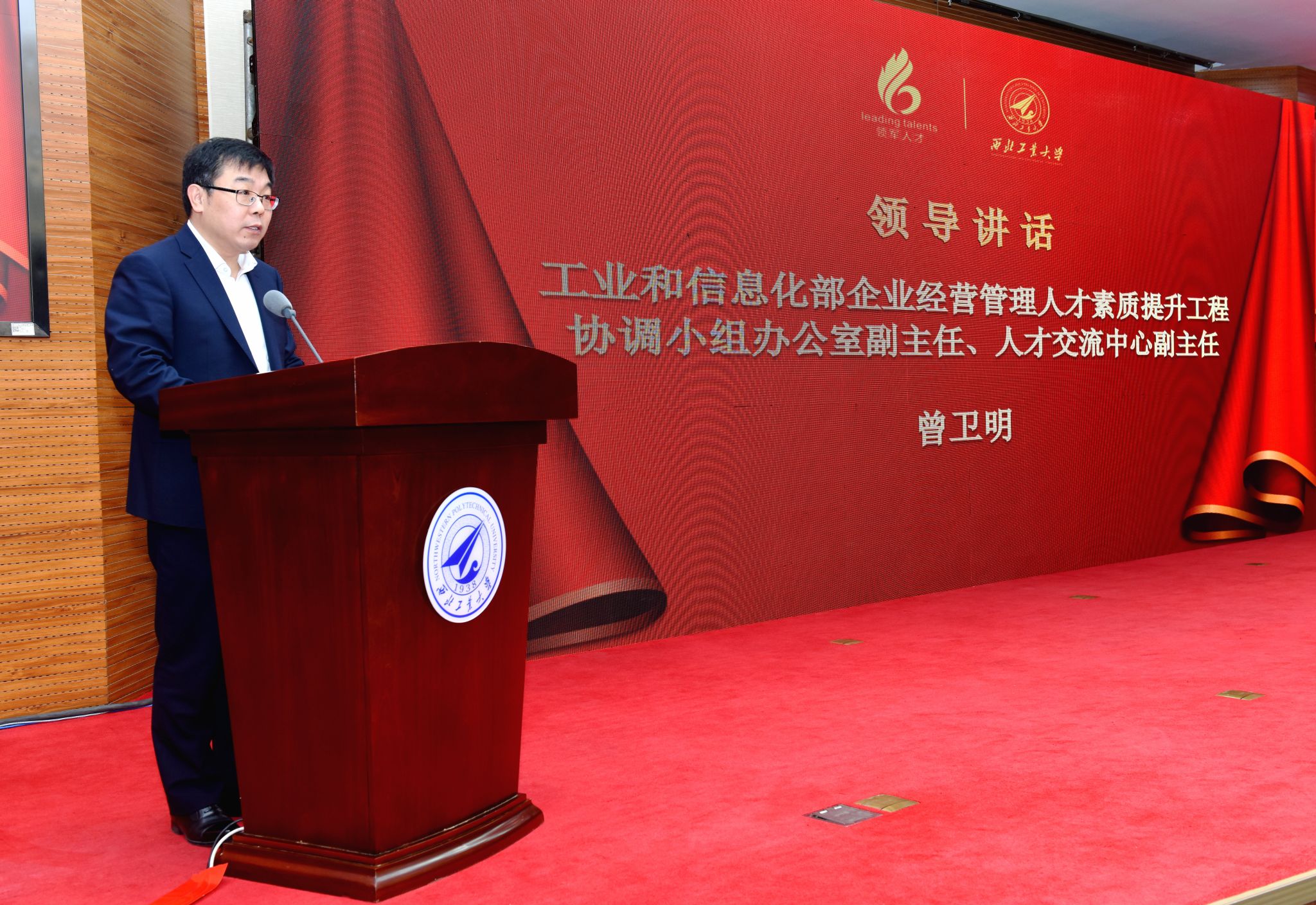 西北工业大学副校长侯成义致辞,他代表学校对新学员表示热烈欢迎,对顺利结业的学员表示诚挚祝贺。他讲到:“今年11月工信部金壮龙部长来校调研时也指出,服务支撑加快推进新型工业化、建设制造强国和网络强国,是部属高校的重要使命”。哈工大和我校作为“工信七子”,流淌着同样的军工血脉,承担领军人才培训工作,是工信部对两所高校的信任,也是我们发挥“服务社会”职能的重要举措。我校作为“工信部中小企业经营管理领军人才培训”第一批获授权机构,自2013年以来已连续开办了12期领军人才培训,累计培训近700余人,为陕西经济转型升级和创新发展提供了强大的智力支持。最后表示,希望通过此次培训,建立起校企沟通的桥梁,推动科技创新、人才培养等领域校企实质性合作。