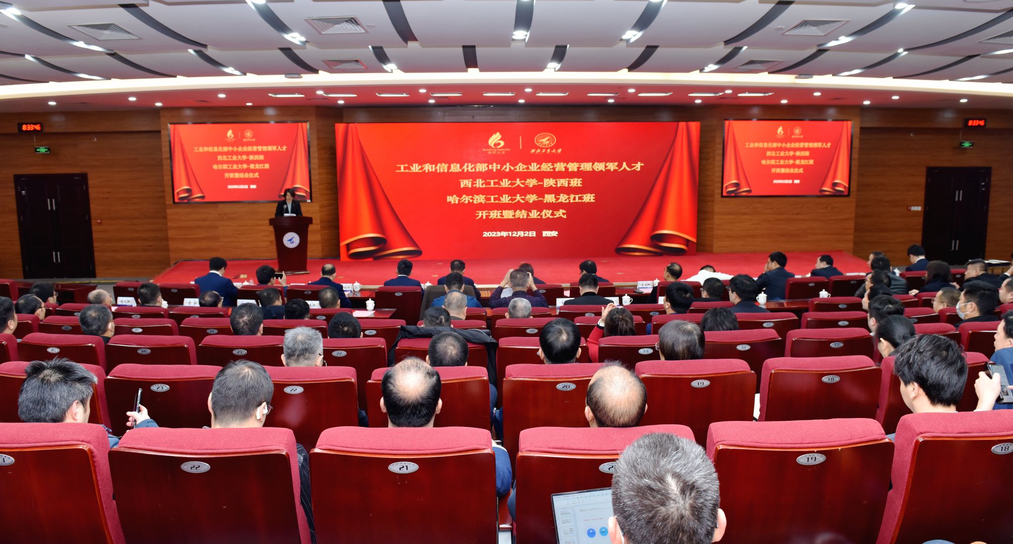 12月2日,工业和信息化部中小企业经营管理领军人才2023-2024年度西北工业大学-陕西班(第12期)开班暨2020-2021年度西北工业大学-陕西班(第9期)、2019-2020年度、2020-2021年度哈尔滨工业大学-黑龙江班结业仪式在我校友谊校区顺利举行。工业和信息化部企业经营管理人才素质提升工程协调小组办公室副主任、人才交流中心副主任曾卫明,人才交流中心服务处处长白晓,西北工业大学党委常委、副校长侯成义,校友会秘书长杨铭,新葡的京集团35222vip院长车阿大、副院长郭云涛,哈尔滨工业大学经济与新葡的京集团35222vip领军人才办公室主任王晶辉,领军班班长、领军校友会、联谊组织代表以及我校、哈工大开班/结业学员等120余人参加了开班/结业仪式。仪式由工业和信息化部企业经营管理人才素质提升工程协调小组办公室秘书处副秘书长张真主持。