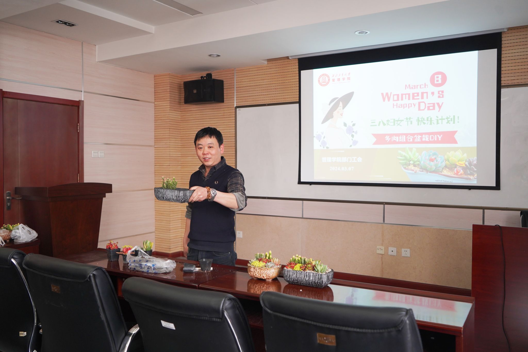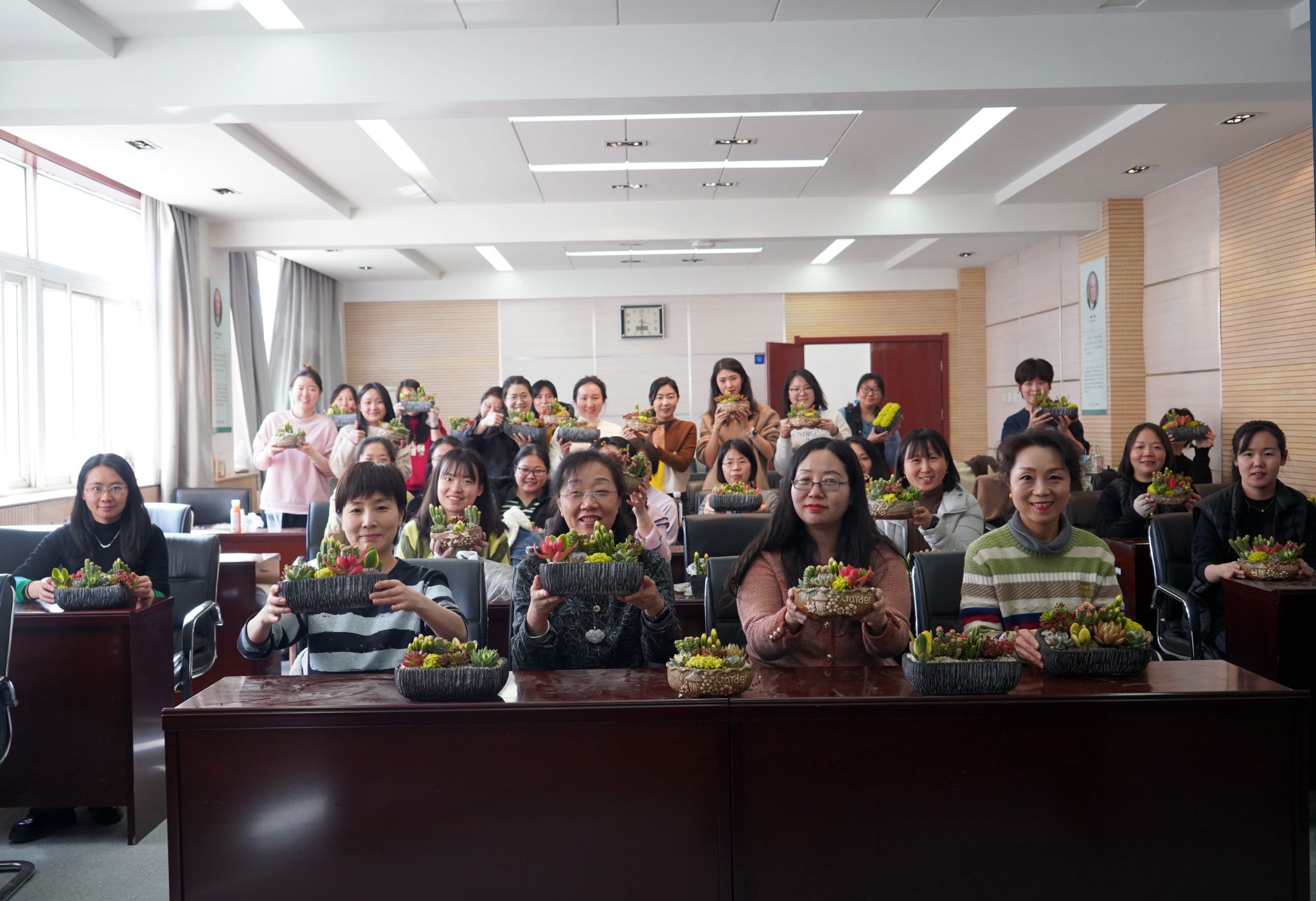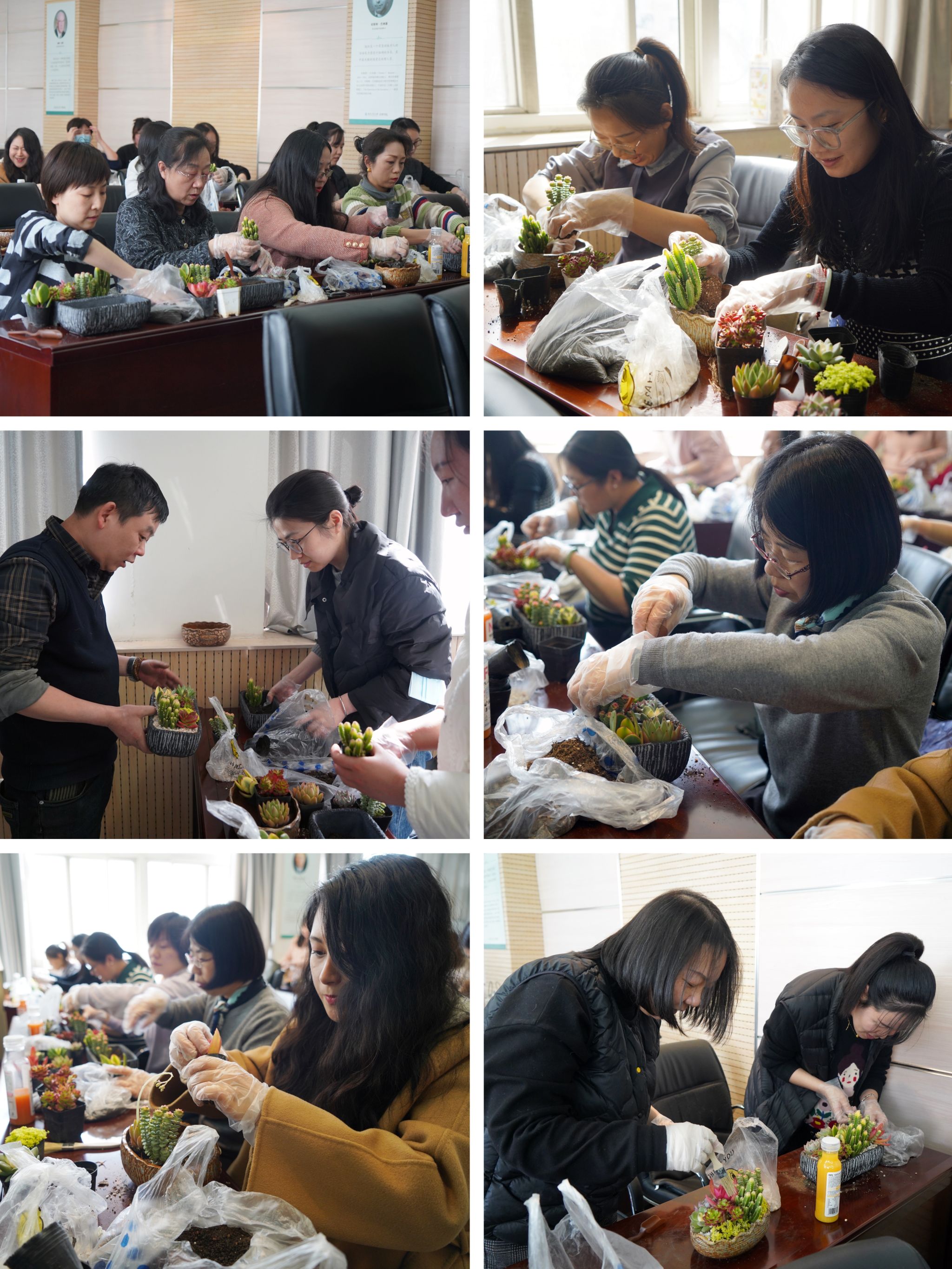 3月7日,在“三八”国际妇女劳动节来临之际,新葡的京集团35222vip工会精心策划了多肉组合盆栽DIY活动,40余名女教师参加了此次活动。