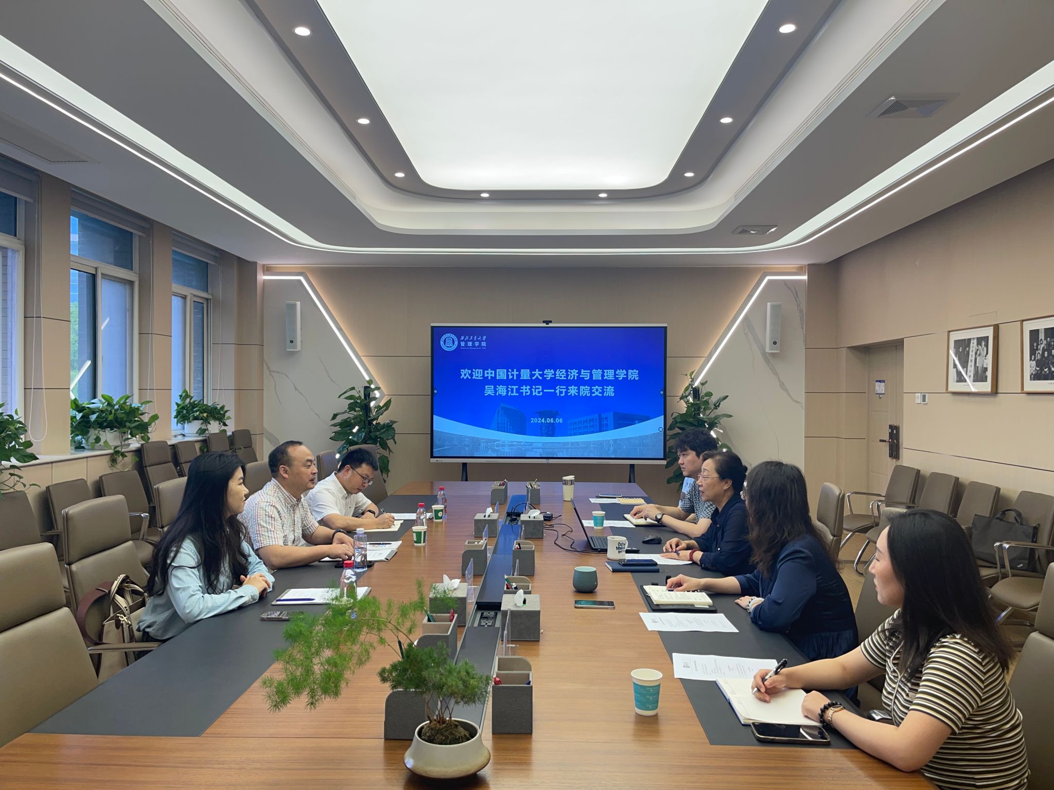 6月6日上午,中国计量大学经济与新葡的京集团35222vip党委书记吴海江一行来院调研,双方在长安校区我院212会议室进行座谈。党委书记张爽、院长助理白洁等相关部门业务负责同志参加会议。
