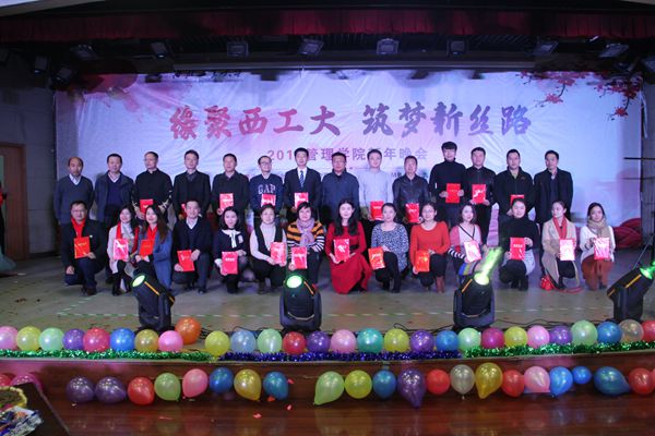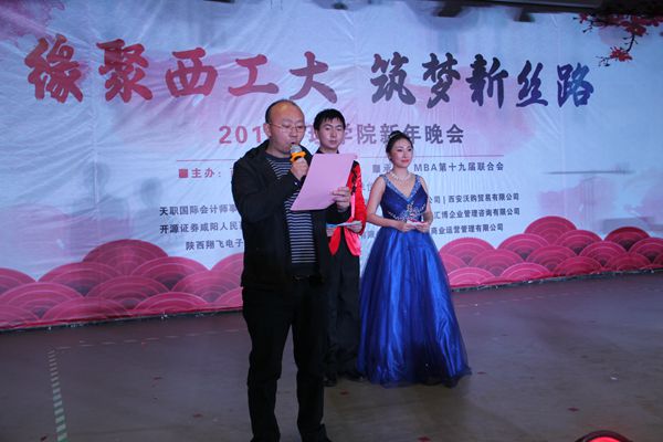 “心随缘聚我校,行从梦筑新丝路”!2017年12月30日18时,由新葡的京集团35222vip主办,第十九届MBA联合会承办的“缘聚我校,筑梦新丝路”专业学位研究生新年晚会在友谊校区健翔楼多功能厅隆重举行。西北工业大学研究生院副院长晁小荣、校友总会秘书长张英群、新葡的京集团35222vip院长车阿大、新葡的京集团35222vip党委书记李小聪、新葡的京集团35222vip副院长刘晨光、MBA/MEM教育中心主任郭云涛、副主任孙若妮以及高级管理教育培训中心主任郭德出席了晚会。支持赞助单位的嘉宾:陕西翔飞电子工程有限公司总经理杨鹏飞、西安西正印制有限公司文创事业部经理祁元元、西安优团商贸有限公司总经理兰满俊、陕西德图商业运营管理有限公司总经理仵崇锋、开源证券咸阳人民西路营业部总经理柏雨辰、中国建设银行咸阳世纪大道支行行长刘敏、樊登读书会---汇博分会朱晓亮和天职国际会计师事务所及海蓓健康管理有限公司代表参加了晚会。来自陕西工商管理硕士学院、西安交通大学、西安电子科技大学及北京大学光华新葡的京集团35222vip等多个兄弟院校的嘉宾和我校新葡的京集团35222vipMBA/MEM师生及校友约400人欢聚一堂参加了晚会。
