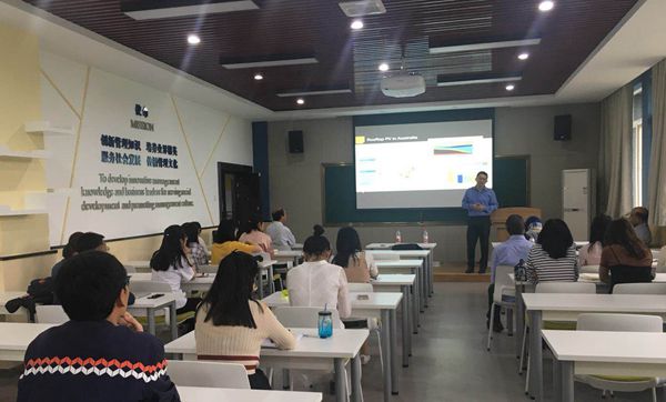 Damminda Alahakoon教授首先简要介绍了拉筹伯大学及其所在的数据分析与认知研究中心,并说明了该研究中心在人工智能和认知科学等领域的研究进展。随后,Damminda Alahakoon教授指出,随着大数据时代的到来,数据呈现出多样性、动态性等特征,这就给机器学习算法提出了更高的要求——能够更好地处理动态数据,针对这种情况,Damminda Alahakoon教授团队提出了一种无监督机器学习算法,并介绍了如何将该算法应用于实时交通行为建模,事故检测和预测性决策支持。随后,Wei Peng博士介绍了他的两个研究课题,一是机器学习在P2P能源交易中的应用,二是以Twitter数据为基础,探讨负面评论在危机发生期间的影响。最后,Damminda Alahakoon教授和Wei Peng博士详细回答了同学们提出的问题,并与师生进行了深入交流与讨论。