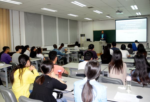 之后,Völz先生基于自己25年来在16个国家极端严峻环境下成功领导国际人道主义救援项目的经历和经验,通过领导力理论与真实案例相结合的方式,生动的描述了各类领导风格的优劣,阐明了有效领导力应具备的特点与行为能力,探讨了学生们怎么能够自我培养成为有效的领导者。