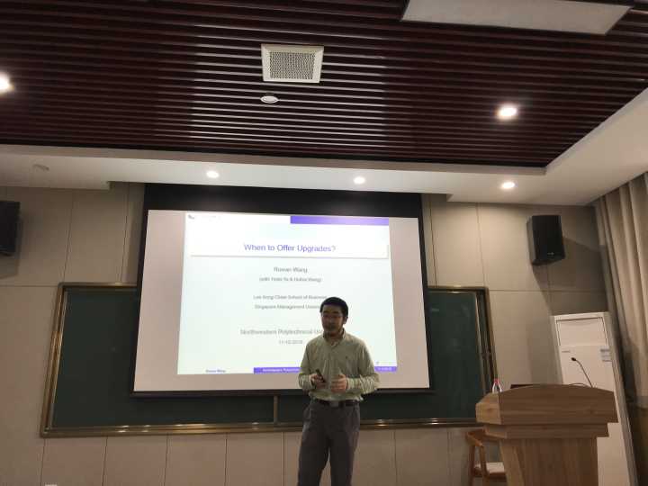 10月11日上午,新加坡管理大学运营我系助理教授王宇博士应邀前来新葡的京集团35222vip进行学术交流,并做了题为“When to Offer Upgrades?”的报告。报告会在我院214报告厅举行,由李乘龙副教授主持,参加此次学术报告会的有来自新葡的京集团35222vip的本科生和研究生。