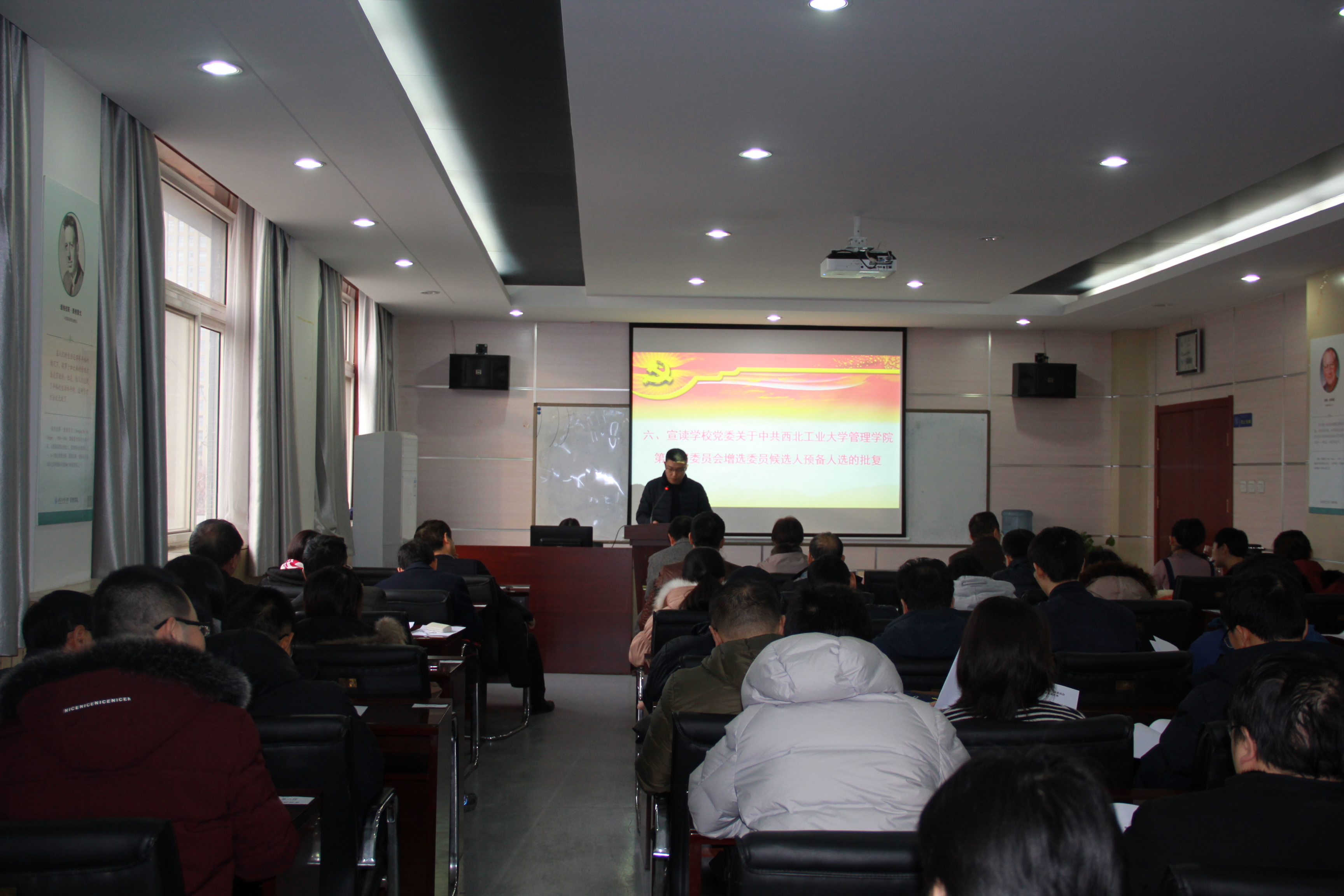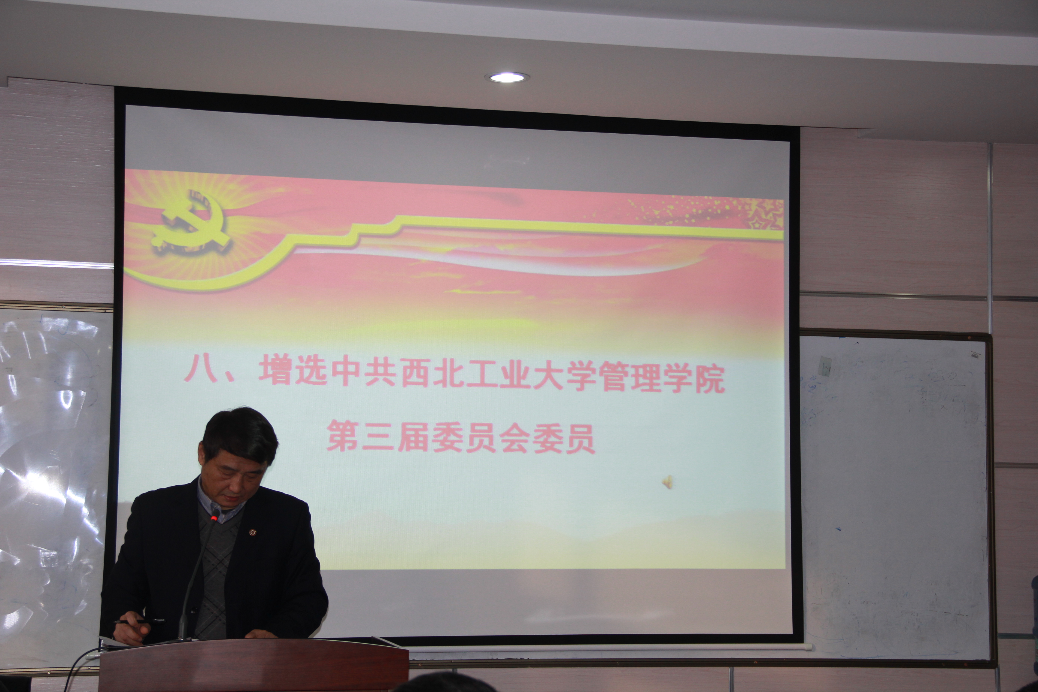 1月15日上午,中国共产党新葡的京集团35222vip第三届委员会委员增选党员代表大会在友谊校区学院楼602顺利召开。校党委常委、纪委书记张海兰,党委组织部副部长王克勤出席了大会,新葡的京集团35222vip82名党员代表出席了大会。大会由学院党委书记李小聪同志主持。