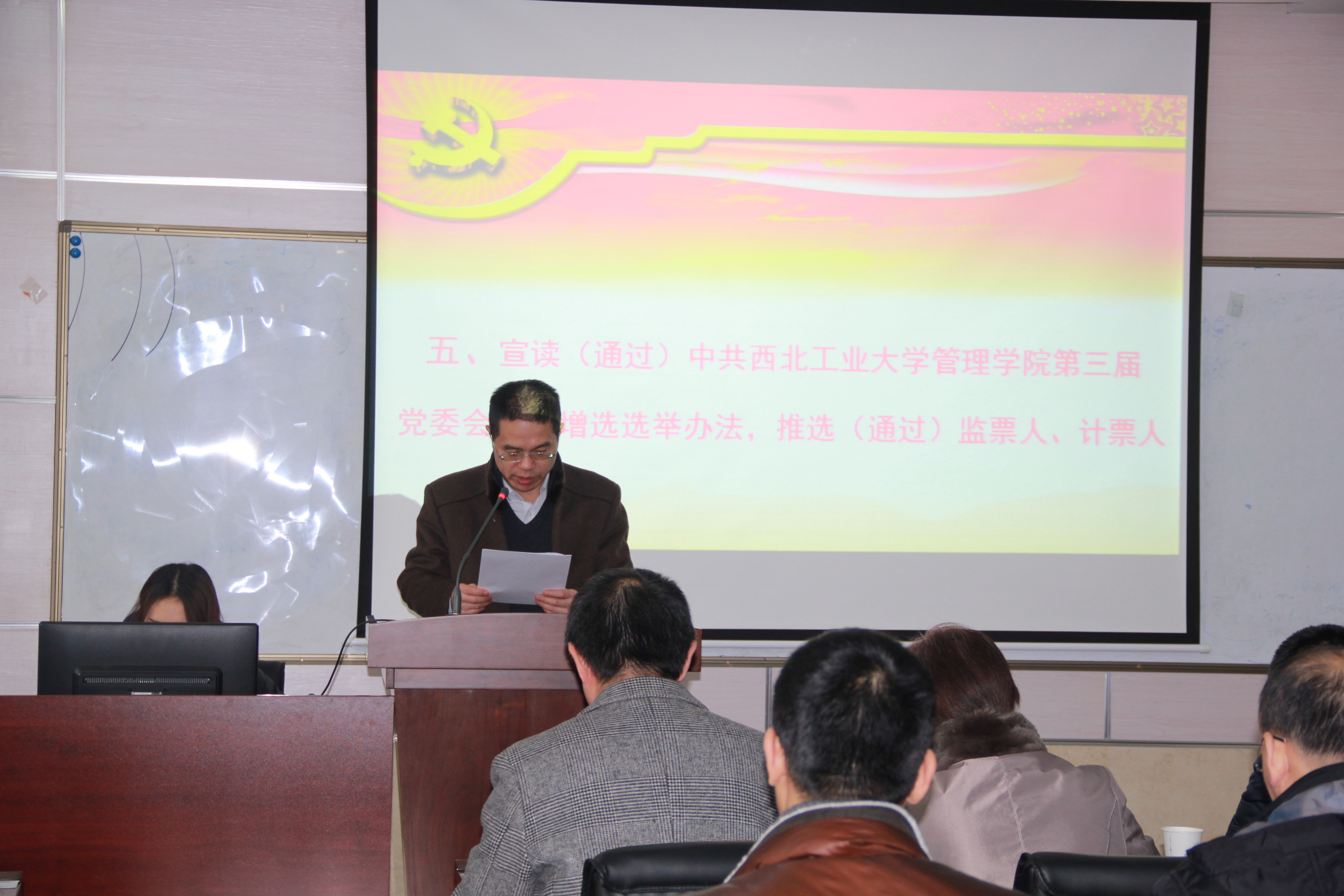 车阿大同志宣读了《中共新葡的京集团35222vip第三届党委会委员增选选举办法》,大会集体审议通过了大会选举办法、监票人与计票人建议名单。