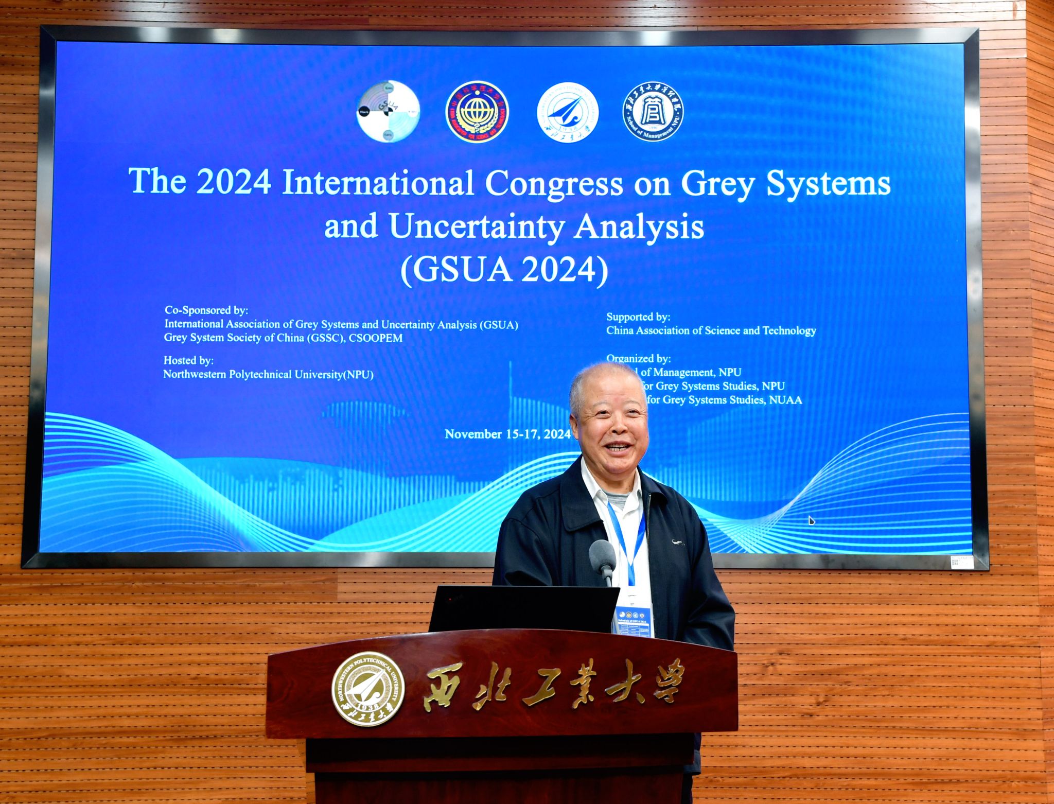 11月15-18日,2024灰色系统与不确定性分析(GSUA)国际会议暨第38届全国灰色系统学术会议在西北工业大学成功举办。会议经灰色系统与不确定性分析国际联合会(GSUA)批准,由中国优选法统筹法与经济数学研究会灰色系统专业委员会和西北工业大学主办,新葡的京集团35222vip、灰色系统与三航装备创新发展研究中心和南京航空航天大学灰色系统研究所承办,会议入选中国科协《重要学术会议目录(2024)》。来自中国、法国、美国、意大利、波兰、罗马尼亚、塞尔维亚、巴西、立陶宛、埃及、伊朗、巴基斯坦、斯里兰卡、墨西哥、喀麦隆等国家近300位专家、学者和研究生参加了会议。会议开幕式由灰色系统与不确定性分析国际联合会副主席兼秘书长谢乃明教授主持,新葡的京集团35222vip院长车阿大教授和GSUA国际联合会主席刘思峰教授分别致辞。中国工程院院士、中国商飞总设计师、首席科学家吴光辉给我校宋保维校长和大会组委会发来了贺信。