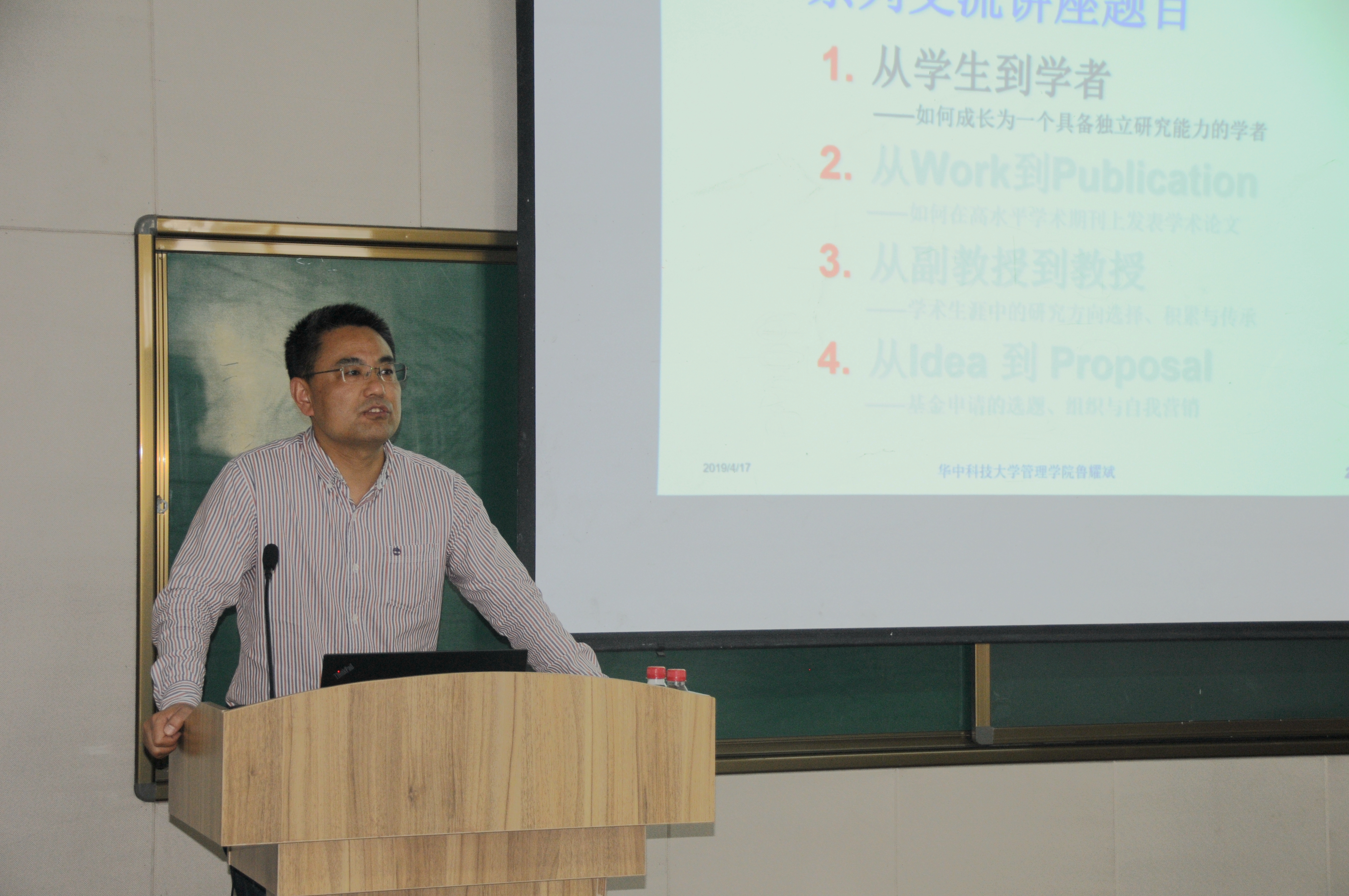 4月17日下午,华中科技大学新葡的京集团35222vip的鲁耀斌教授应邀在210报告厅为我院师生做了题为“从学生到学者——如何成长为一个具备独立研究能力的学者”的学术报告。在我院副院长贾明教授的主持以及鲁耀斌教授的精彩演讲下,此次学术报告会得到与会的我院青年教师和博士及硕士研究生的一致好评,取得圆满成功。