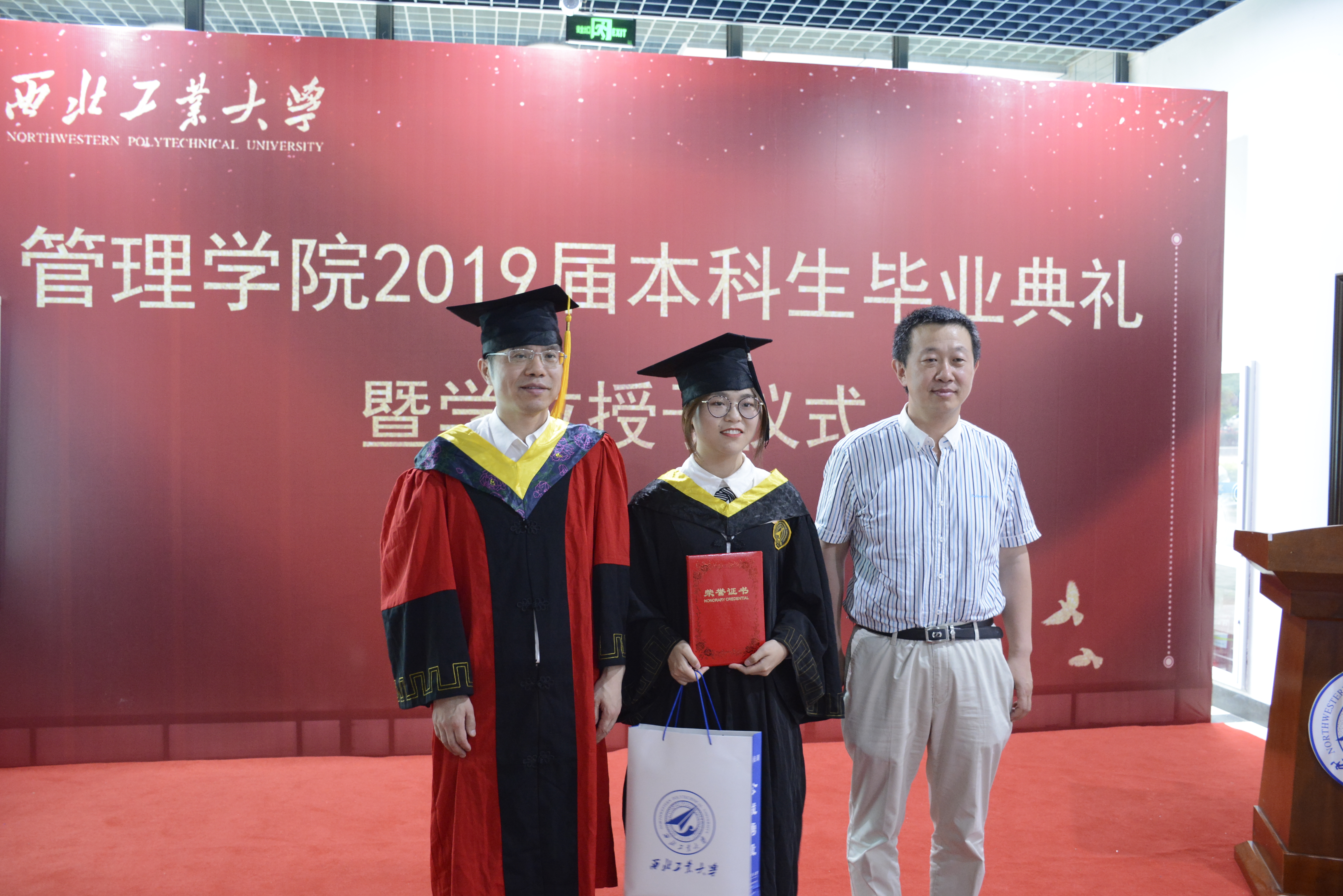 在激昂的乐曲声中,新葡的京集团35222vip院长车阿大,党委书记李小聪为优秀毕业生,校友联络人以及获得2019届西工工业大学“翱翔学子建功立业奖”毕业生拨穗,颁发荣誉证书并赠送毕业礼物。获奖学生们纷纷表达了对母校、学院,师长的感恩之情,并表示今后将不断努力拼搏,有所作为,为管院,为母校争光添彩。