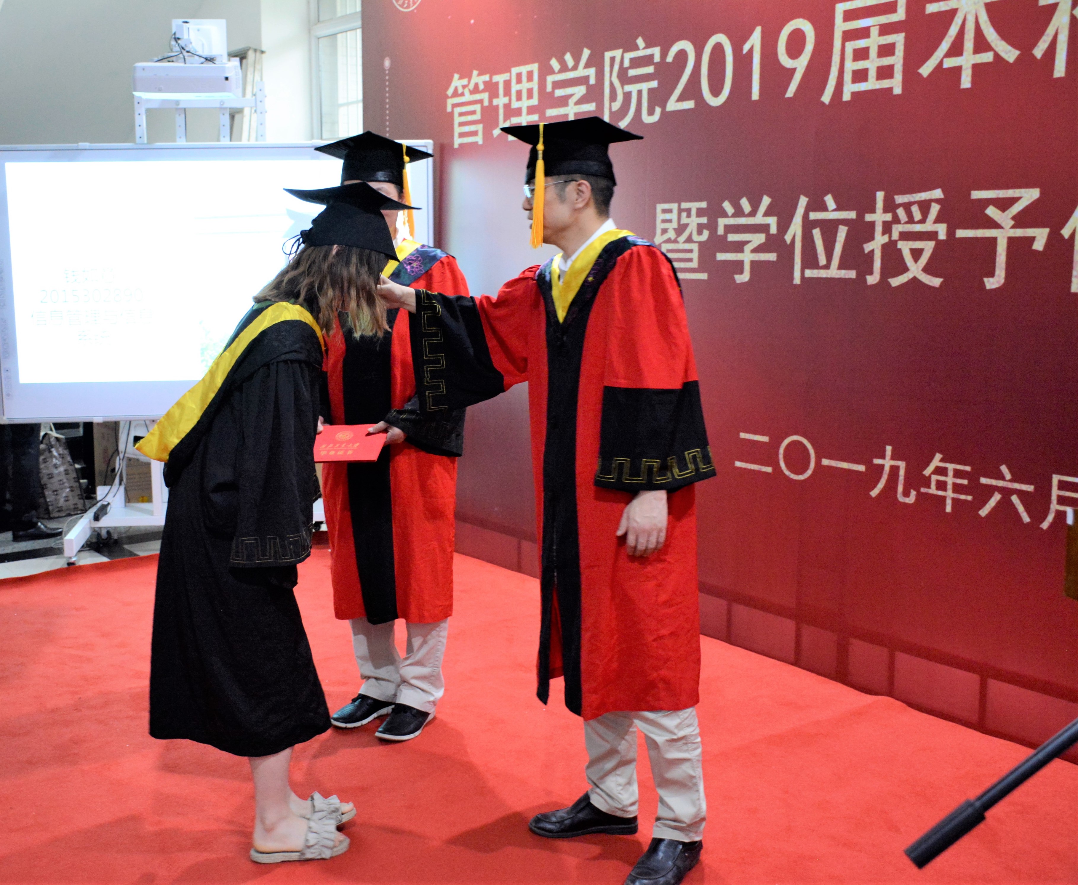 最后,新葡的京集团35222vip党委副书记曹子尧宣读获得管理学学士学位的毕业生名单,车阿大院长为毕业生们正冠拨穗、李小聪书记颁发毕业证书并赠送毕业礼物。在依依不舍的告别声中和师长的殷切希望中,我院2019届本科生毕业典礼暨学位授予仪式圆满结束。