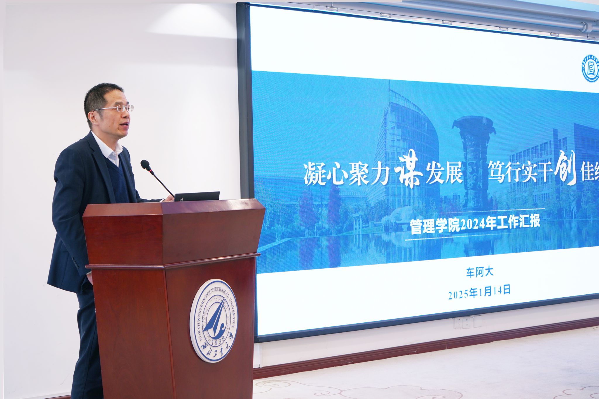 教职工大会上,副院长郭云涛通报专业学位课程、论文复试等培养的相关事宜。党委副书记王海啸通报学生就业情况、“三大赛”校赛备赛情况和寒假期间安全稳定相关工作。院长助理李乘龙对2025年海外引才项目进行宣讲动员。