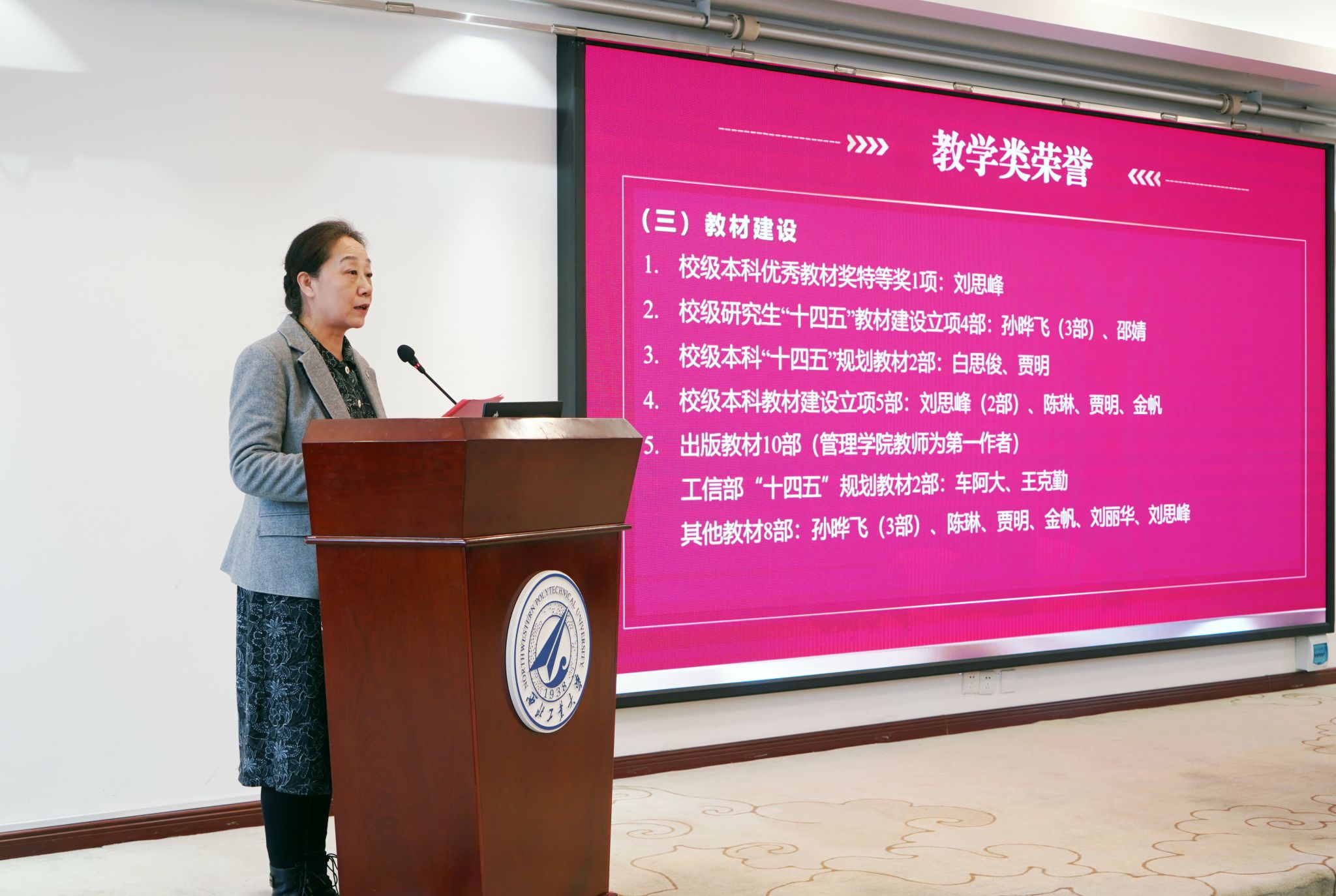 张爽宣读了学院2024年度光荣榜,对本年度获得重要荣誉奖励、为学院发展做出突出贡献的个人和团队进行表彰。