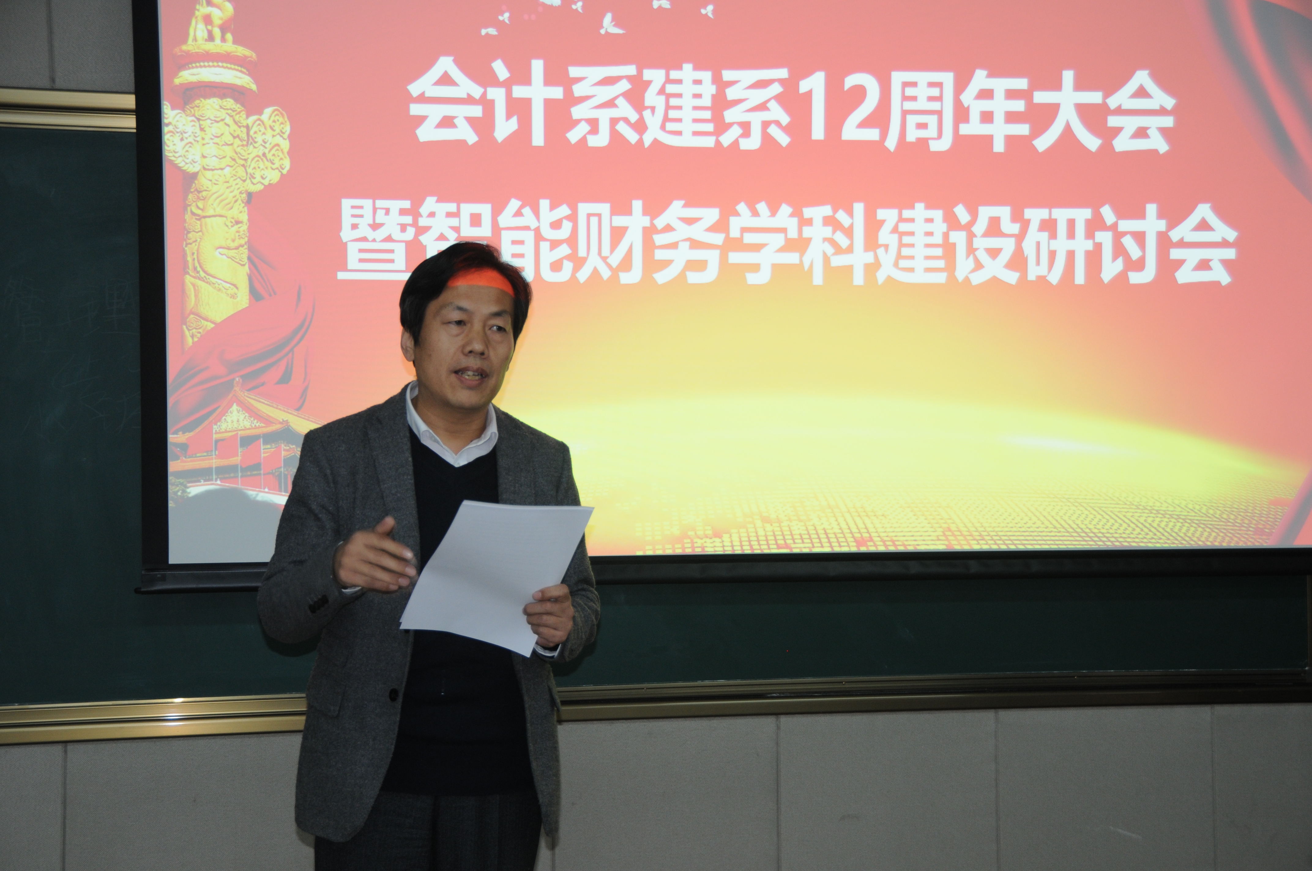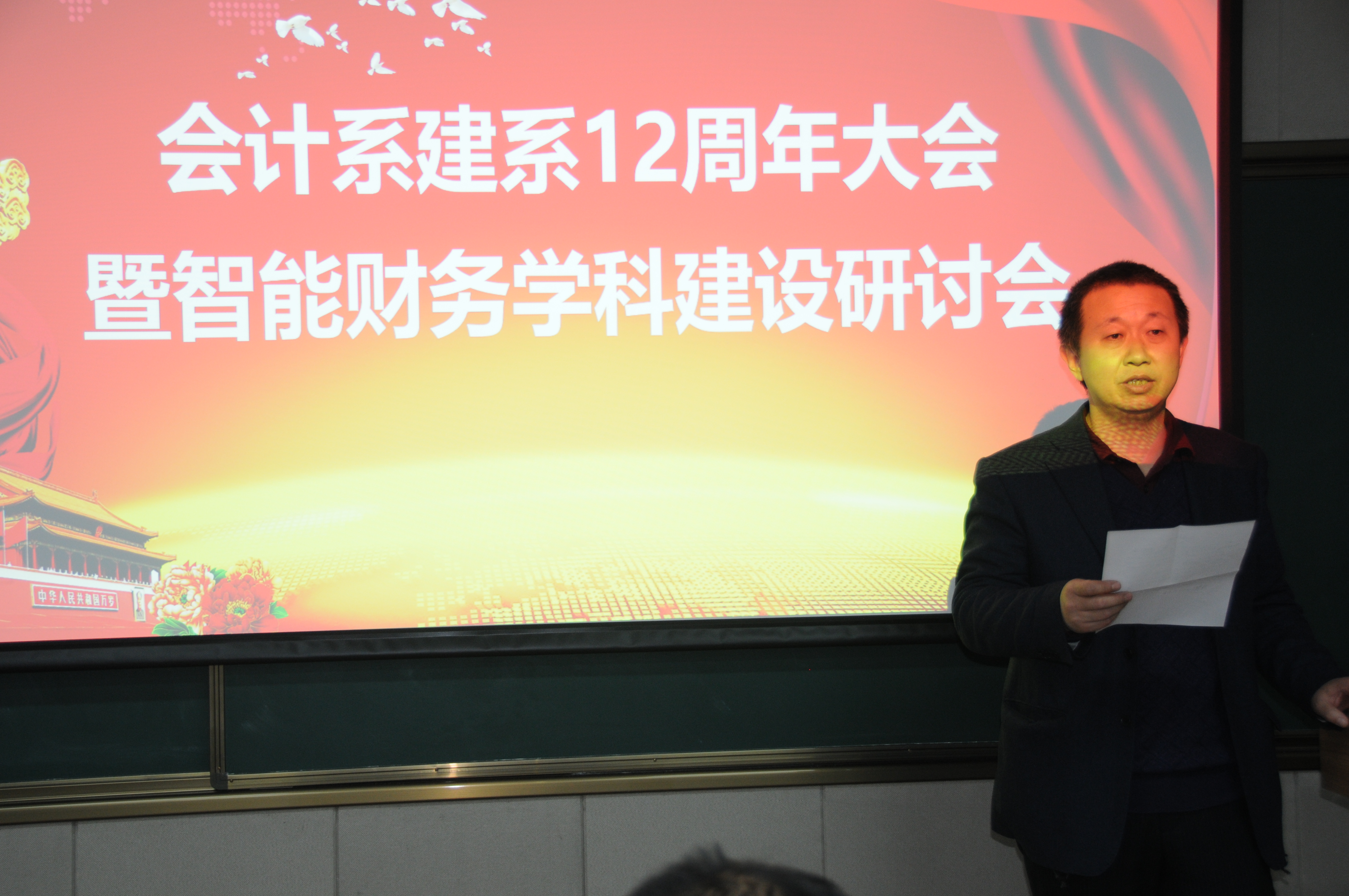 庆祝建系12周年大会由会计系主任助理高伟伟主持,系主任金帆作了建系12周年发展报告,报告分为会计系发展历程回顾与优秀成果汇报、会计系目前的优势和面临的挑战、会计系未来发展规划三个方面。报告后,院长车阿大致辞,对会计系建系以来的发展及取得的成果进行了充分肯定,对会计系的未来发展提出了更高期望。