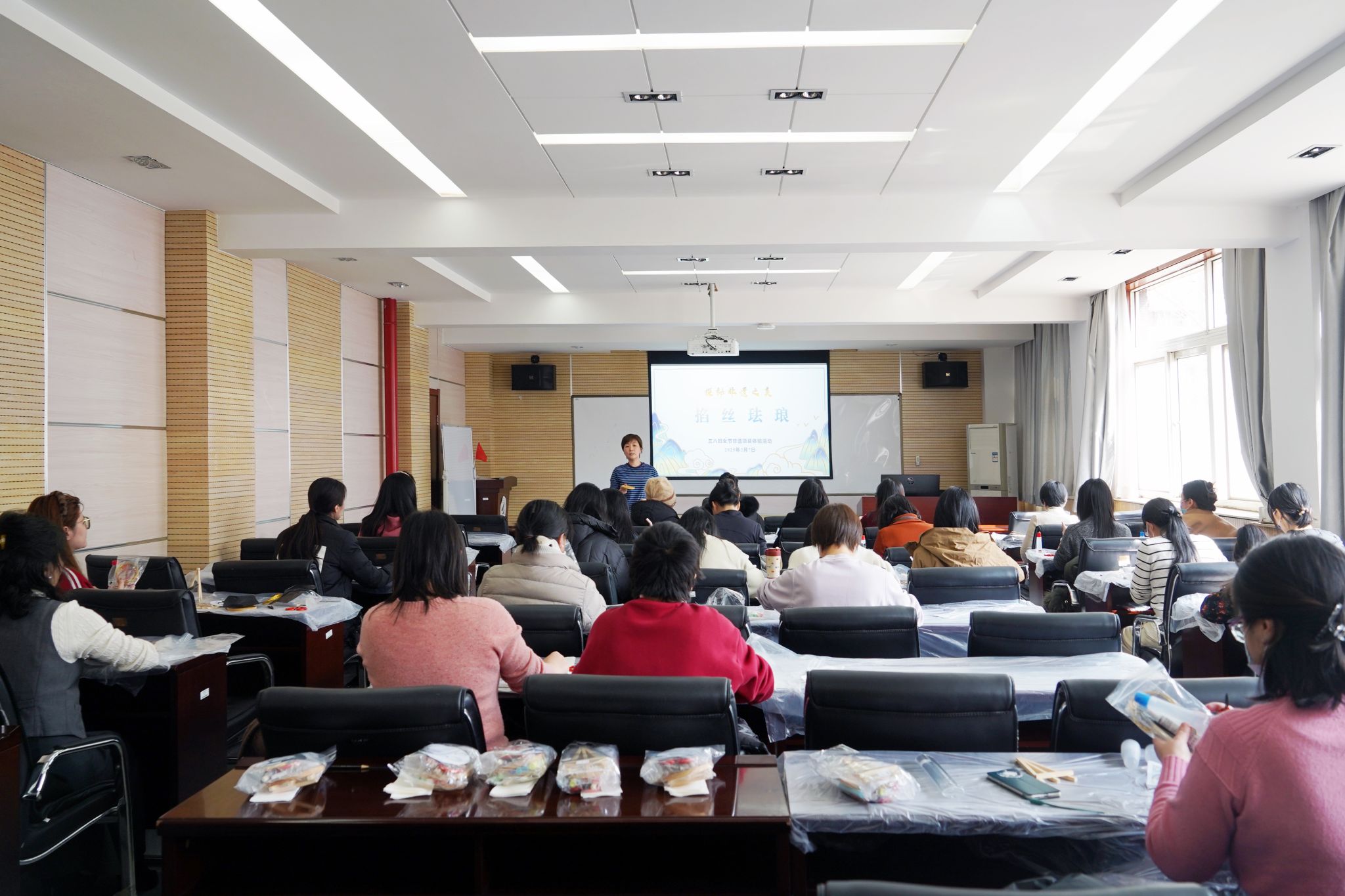 为庆祝“三八”国际劳动妇女节,弘扬中华优秀传统文化,2025年3月7日下午,新葡的京集团35222vip工会精心策划了“掐丝珐琅-非遗项目体验活动”,邀请全院女教职工沉浸式体验国家级非物质文化遗产的魅力。本次活动吸引了近40名女教职工的热情参与。