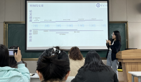 会议伊始,成功获得华为项目经理offer的高雅纯以时间线的方式梳理了自己如何在求职与毕业论文写作之间保持平衡,并分享自己在求职过程中的心路历程。她利用表格清晰展示了如何高效记录投递公司的信息及求职进度,同时通过流程图直观总结了求职各环节的关键步骤。此外,她详细讲解了投递与面试流程中的注意事项,并强调求职过程中要提前规划、主动争取、灵活调整。最后,她鼓励同学们保持开放心态,以积极的姿态面对求职挑战。