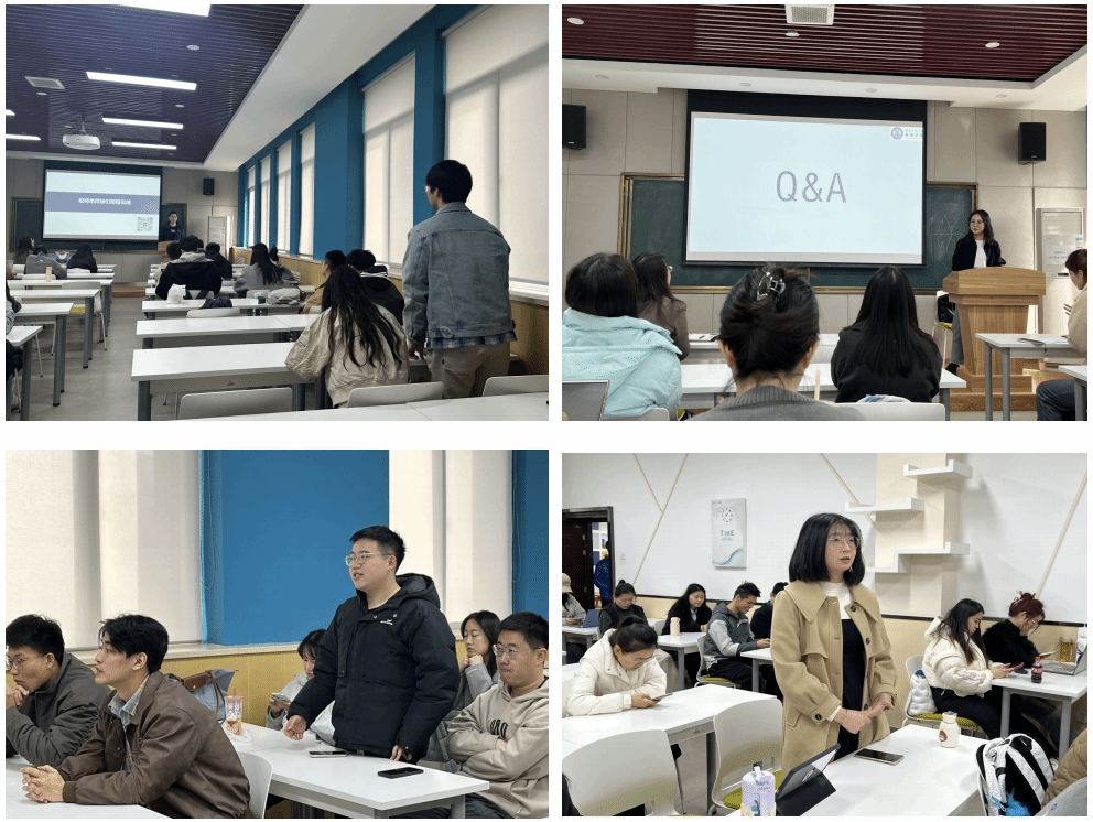 分享会现场气氛热烈,在互动答疑环节中,同学们积极参与,就实习经历与求职意向的匹配、如何选择适合自己的岗位以及如何平衡多重任务等关键问题向三位嘉宾请教。嘉宾们结合自身经验,耐心解答,并提供了切实可行的建议,帮助同学们更清晰地规划求职路径,现场交流氛围轻松而富有收获。