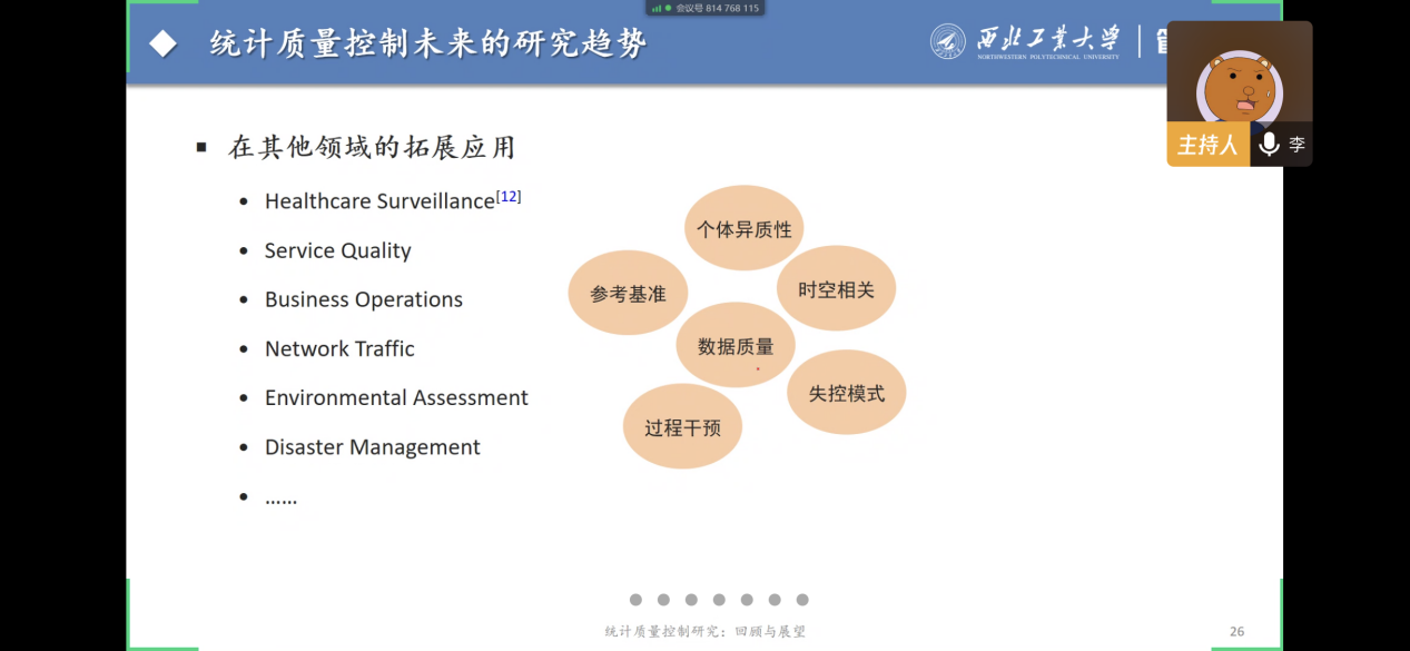 4月28日下午,新葡的京集团35222vip通过腾讯会议平台举办了《管理理论专题》系列报告第八讲。主讲人为李乘龙副教授,本次讲座主题为“统计质量控制研究:回顾与展望”。这属于博士生前沿课程的一部分,旨在让大家对统计质量控制技术有更系统的了解,校内多位老师和学生参加了此次线上学术讲座。