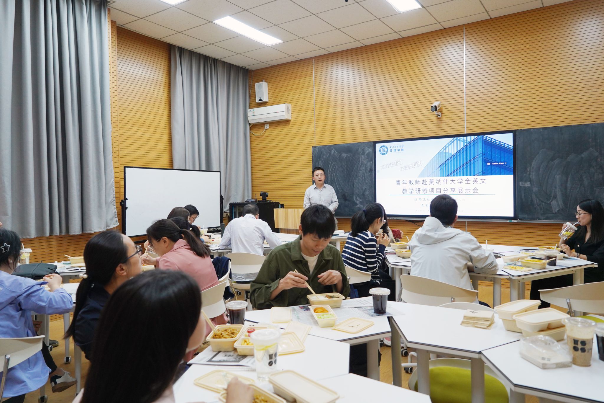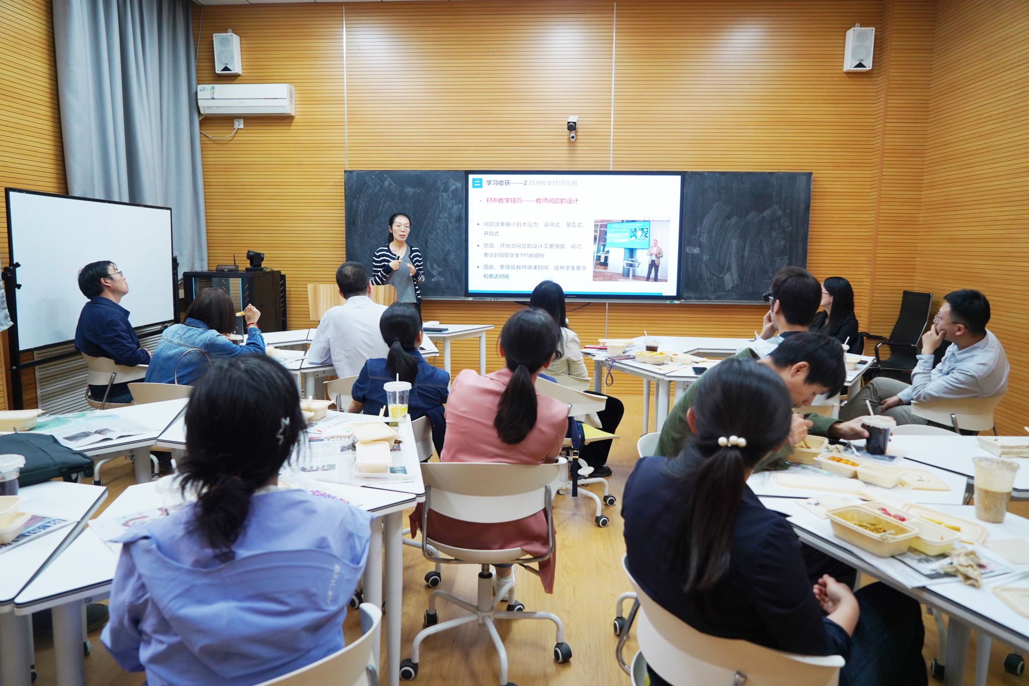 两位教师以“学理论、用技巧、重实践——全英文教学能力提升三维路径”为题,同参会的青年教师分享了EMI理论基础与教学理念,深入解析课堂互动、问题设计等教学策略的应用,并就EMI教学的本土化实施路径和策略等问题同与会教师交流探讨。