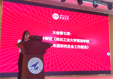 沈欣怡代表校研究生会致辞,她表示研究生会和学生代表们要筑牢信仰之基,勇于担当作为,加强研究生会组织建设、深化改革措施,把服务同学和服务学校发展落到实处。