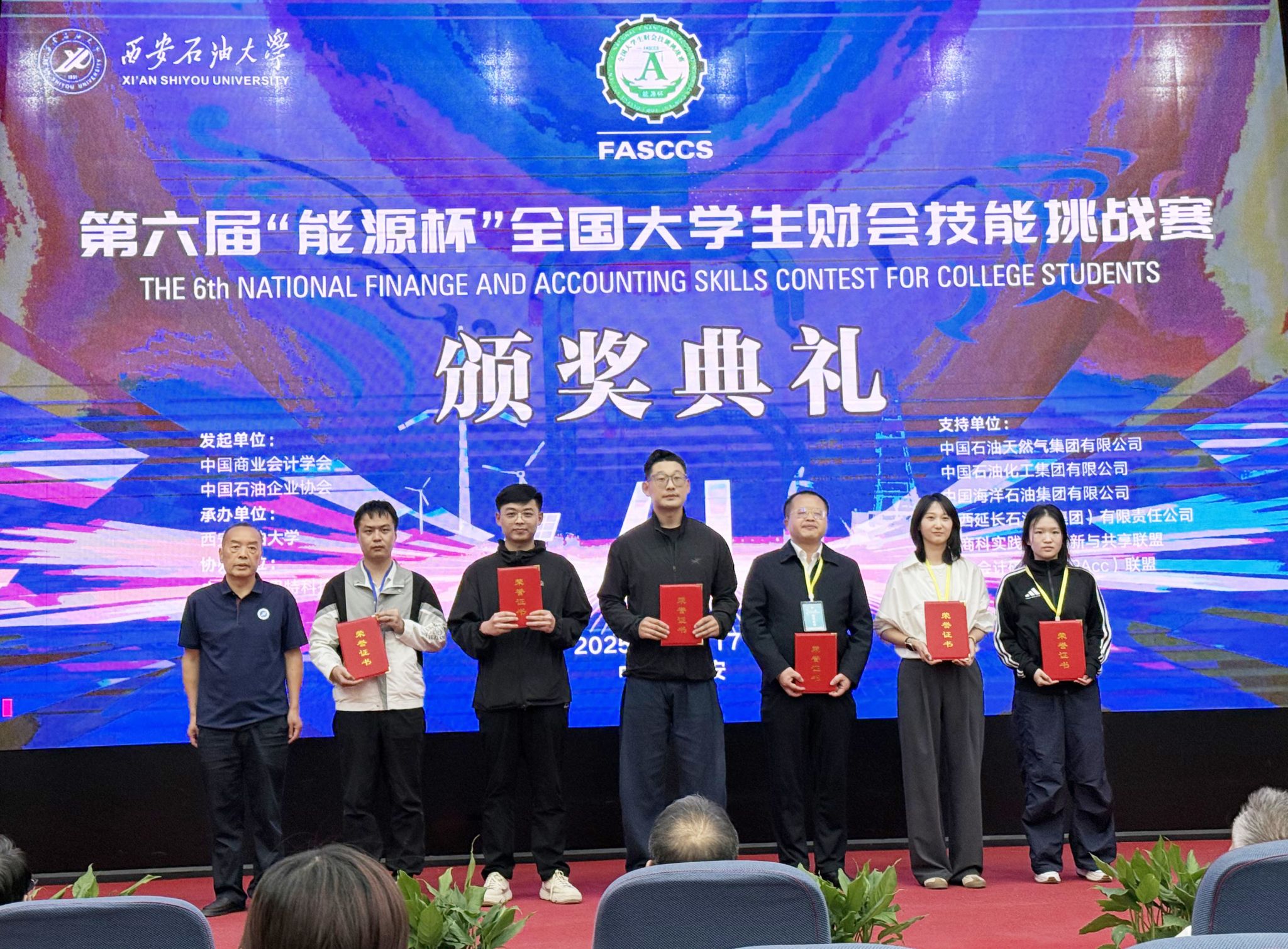 近日,第六届 “能源杯”全国大学生财会技能挑战赛在西安石油大学雁塔校区落下帷幕。由我校新葡的京集团35222vip学子组成的 “必胜客”代表队(队员王宇昕、贾晶晶、林飞彧、杨利通)在杨萍、陈琳两位教师的指导下,从全国 37 支参赛队伍中脱颖而出,一举斩获全国一等奖,我校获评 “优秀组织单位”,杨萍、陈琳老师荣获 “优秀指导教师” 称号,实现赛事成绩与组织荣誉的双丰收。