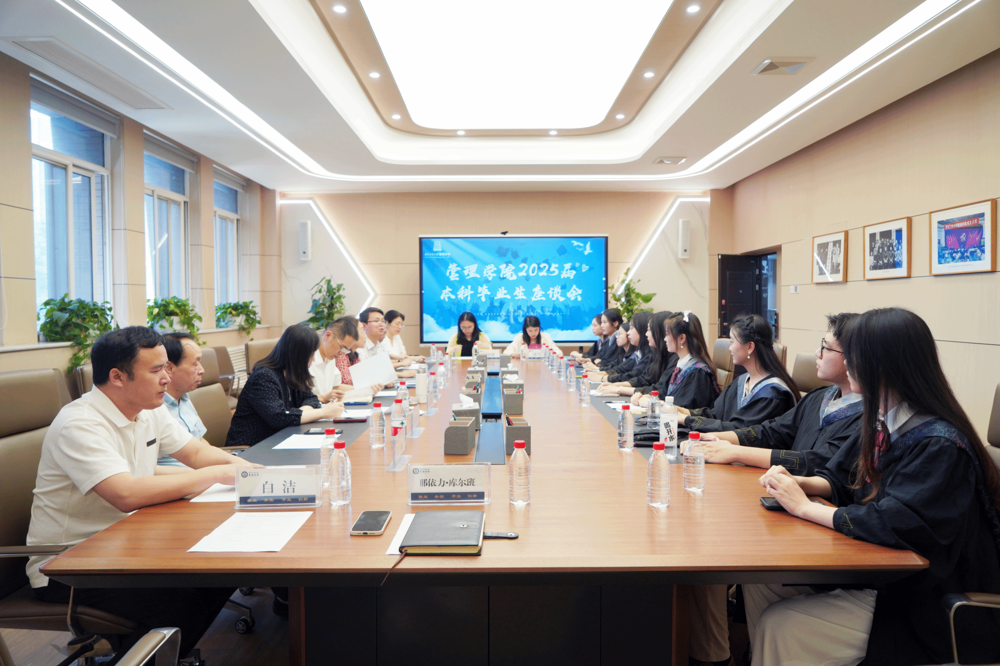 6月16日上午,我院2025届本科生毕业座谈会在学院212会议室举行。学院院长车阿大、党委书记张爽、副院长陈琳、党委副书记王海啸、各系系主任、毕业年级辅导员、本科生教学秘书以及11名本科毕业生代表齐聚一堂,以座谈会见证成长与收获。会议由王海啸主持。