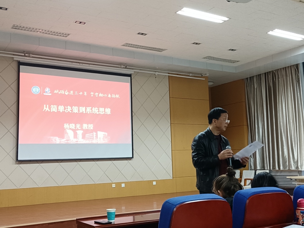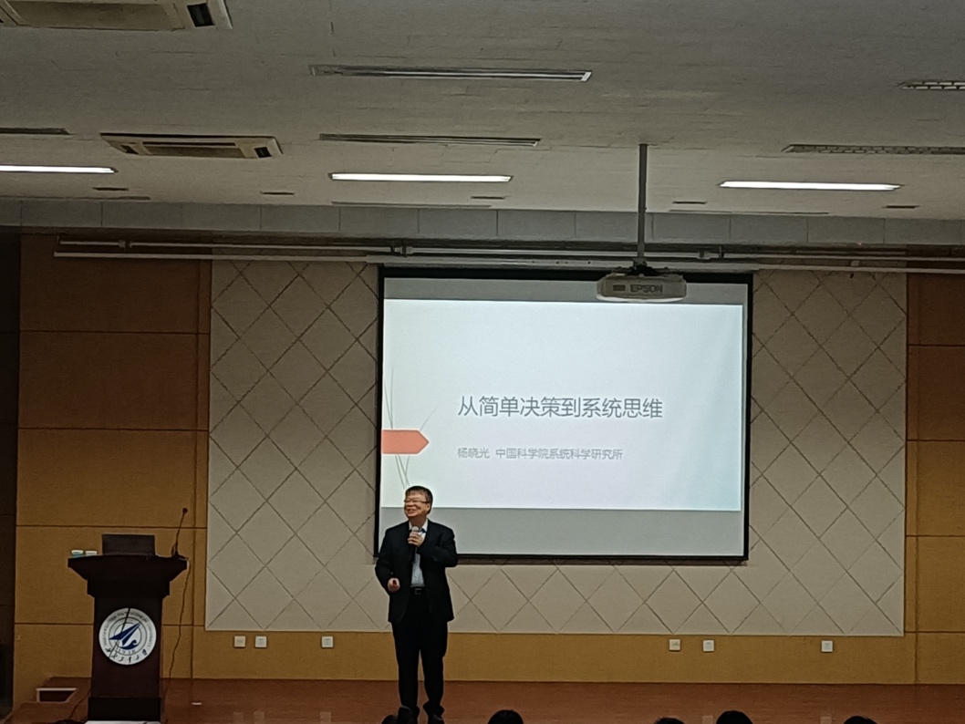 11月20日下午14:30,中国科学院数学与系统科学研究院研究员、博导,中国科学院管理决策与信息系统重点实验室副主任杨晓光教授应邀做客我校翱翔名校讲堂,在长安校区新葡的京集团35222vip大报告厅为我校师生带来了一场主题为《从简单决策到系统思维》的精彩讲座。此次翱翔名家讲堂由西北工业大学党委学生工作部主办,新葡的京集团35222vip承办,新葡的京集团35222vip杨乃定教授主持。