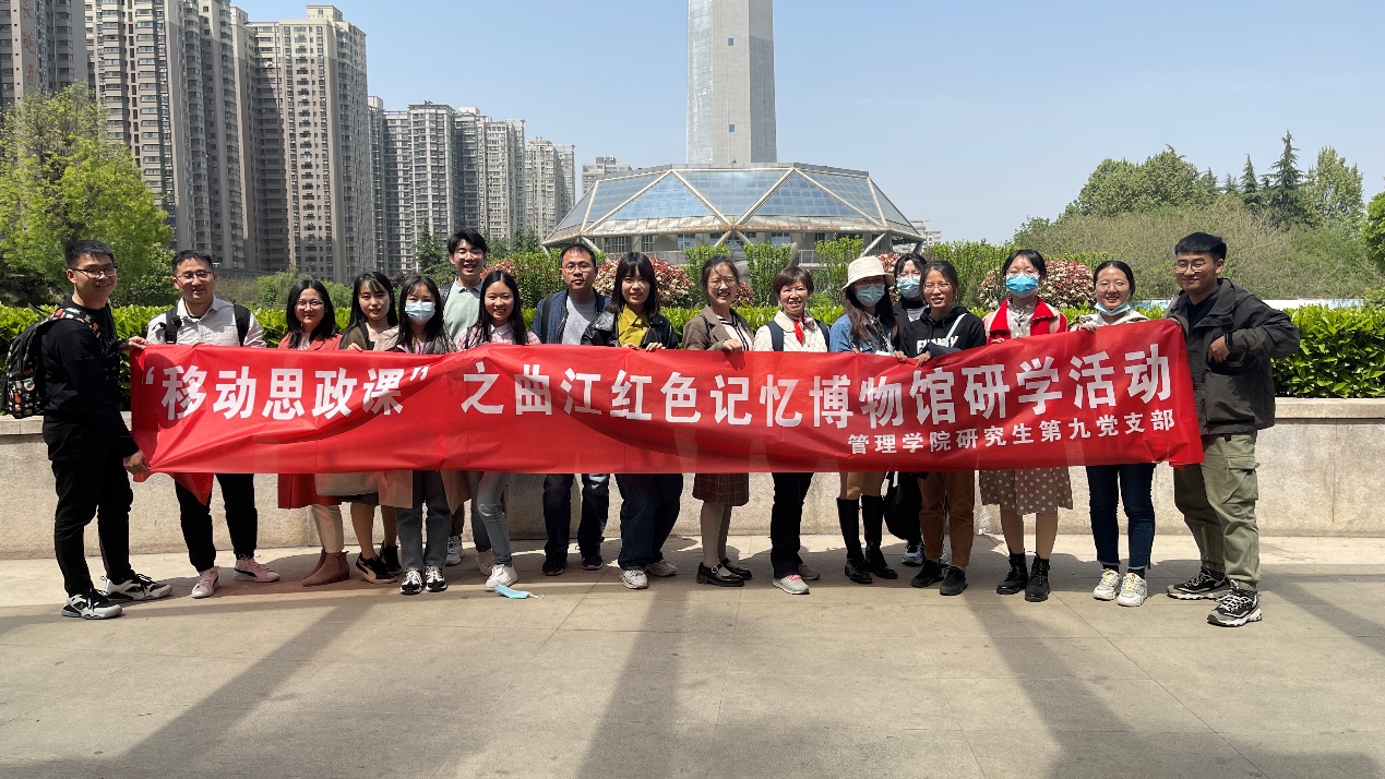 为贯彻习近平总书记关于崇尚英雄、缅怀英烈的重要论述和党史学习教育的重要讲话精神、深入学习英烈事迹、重温英雄历史、引导师生更好弘扬和传承红色精神文化,2021年4月17日上午十点,学校党委副书记、纪委书记张海兰老师,新葡的京集团35222vip研究生辅导员吴蓓老师带领新葡的京集团35222vip研究生第九党支部全体学生党员到西安市曲江红色记忆博物馆开展主题党日活动。