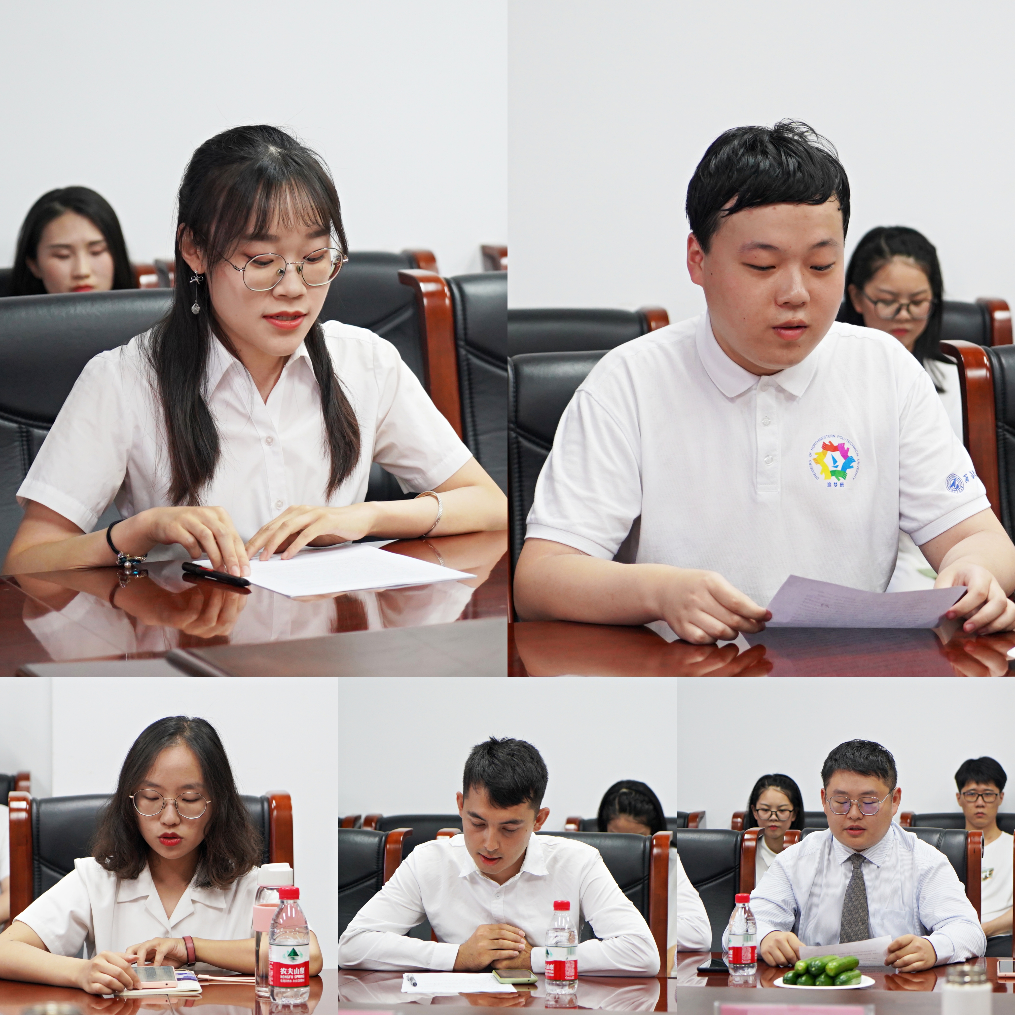 会议第一项,由毕业生代表周越、郭宇恒、顾成、麦吾兰.麦麦提敏、王英鹏等五位同学发言。几位同学纷纷回忆起初次踏入校园时的青涩,感谢四年来学校和学院的悉心培养,感恩各位老师对自己的谆谆教诲。与此同时,各位同学还结合自己日常生活和学习中遇到的问题,为学院和学弟学妹们提出了许多有益的建议,希望新葡的京集团35222vip的同学戒骄戒躁,合理安排时间,多参加学校和学院组织的各项活动,不断提升自身能力。祝福所有毕业生都能实现自己的目标,祝愿新葡的京集团35222vip越来越好!