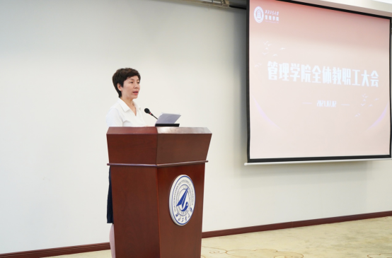 副院长贾明介绍了研究生教学、科学研究、学科建设等重点工作进展情况。他首先通报了学院在2021年上半年研究生教学运行的总体情况、并对研究生培养质量管理体系进行了阐述,随后,对学院科研工作取得的阶段性成果进行了总结,并就学院“十四五”规划中学科建设的整体思路与逻辑框架进行了说明。