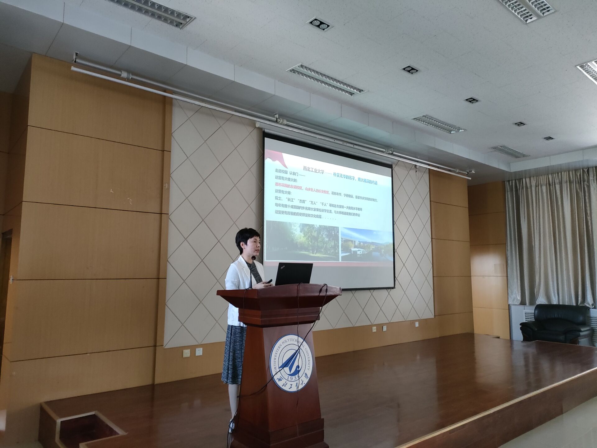 乔彩燕书记用生动的故事带同学们回顾了我校悠久的办学历史:在抗战时期,与西南联大同样颇具影响力的西北联大师生步行南迁,在物质条件极其困难的情况下,教师潜心育人,学生苦学成才、立志救亡图存、科技报国;华航西迁,刚刚组建四年的华东航空学院响应国家号召内迁西安,在西迁过程中,形成了一代代“我校人”传承“热爱祖国、顾全大局、艰苦创业、献身航空”的“西迁精神”;再是中国人民解放军军事工程学院航空工程系整体并入,最终形成了今天“脉源三支”、强强融合、文化厚重、特色鲜明的西北工业大学。