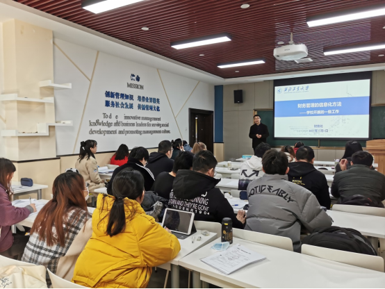 两位老师讲课既深入浅出,又生动活泼,理论联系实际的授课形式受到了学生们的欢迎。通过课程,同学们也了解到,西北工业大学财务信息化工作目前居全国高校领先水平,并且是入选财政部电子票据入账试点的三所高校之一,大家对母校的自豪感油然而生。