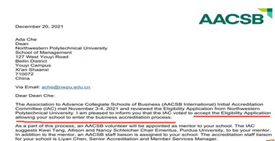 12月20日,新葡的京集团35222vip收到国际精英商学院协会(The Association to Advance Collegiate Schools of Business,简称AACSB)认证委员会的通知:新葡的京集团35222vip正式通过了AACSB资格认证申请(Eligibility Application,EA)报告的审批。