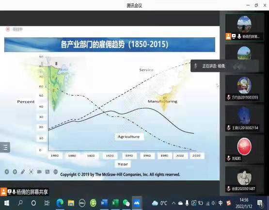 1月10日,我院2021-2022春季学期教学工作在线上全面展开。开课过程中,教师们使用多种线上教学工具如雨课堂、腾讯会议、腾讯课堂等开展线上教学工作。老师们以鼠标代替粉笔授业解惑,学生们以宿舍代替教室认真学习。虽然上课方式有所改变,但老师们不改授课的责任与热情,学生们不改学习知识的追求与渴望,师生紧密配合,积极互动,课堂教学氛围、效果良好。