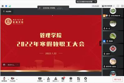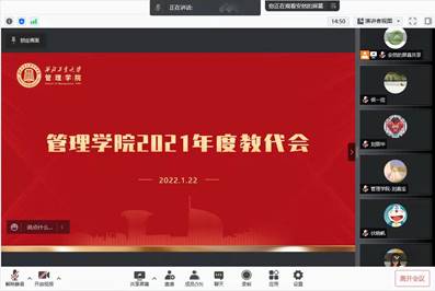 2022年1月22日,新葡的京集团35222vip线上召开2021年度教代会暨全院教职工大会。会议分两部分进行,一是由工会主席蔡建峰主持2021年度教职工代表大会;二是由学院党委书记乔彩燕主持2022年寒假全院教职工大会,学院全体教职工参加了此次会议。