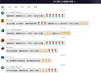 每位学生家长都在急切的等待着学生回家。学院辅导员在做好学生工作的同时,及时将学校的离校安排告知家长,赢得家长对学校的认可和赞誉。家长们通过辅导员在家长群里的发照片和视频,看到深夜一辆辆开进校园的车队、看到凌晨老师们陪同学生一起在乘车点候车、看到学校为同学们发放的爱心卡片、看到同学们拿着“工大,我爱你”的标牌拍照时的开心笑容,被深深的打动了,“为我校点赞”“为是我校的学子而骄傲”!