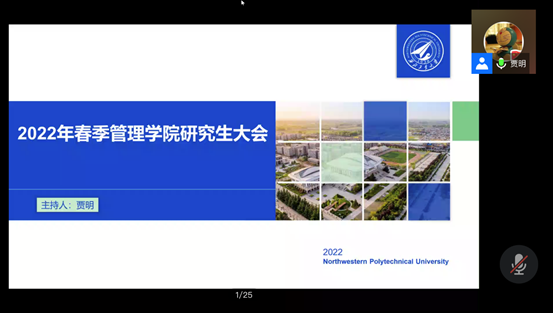 4月30日晚,我院2022年研究生大会在线上成功召开,本次会议由新葡的京集团35222vip副院长贾明主持,全体研究生同学参与会议。