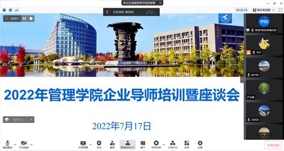 7月17日下午,我院2022年企业导师培训暨座谈会顺利召开。本次会议以线上线下相结合形式进行,企业导师代表近20人线下参加了会议,80余人线上参加了会议。新葡的京集团35222vip党委书记乔彩燕、MBA/MEM教育中心主任杨宏玲、MPAcc教育中心/案例研究与开发中心主任金帆、MBA/MEM教育中心副主任孙若妮、肖平出席了会议。会议由新葡的京集团35222vip副院长郭云涛主持。