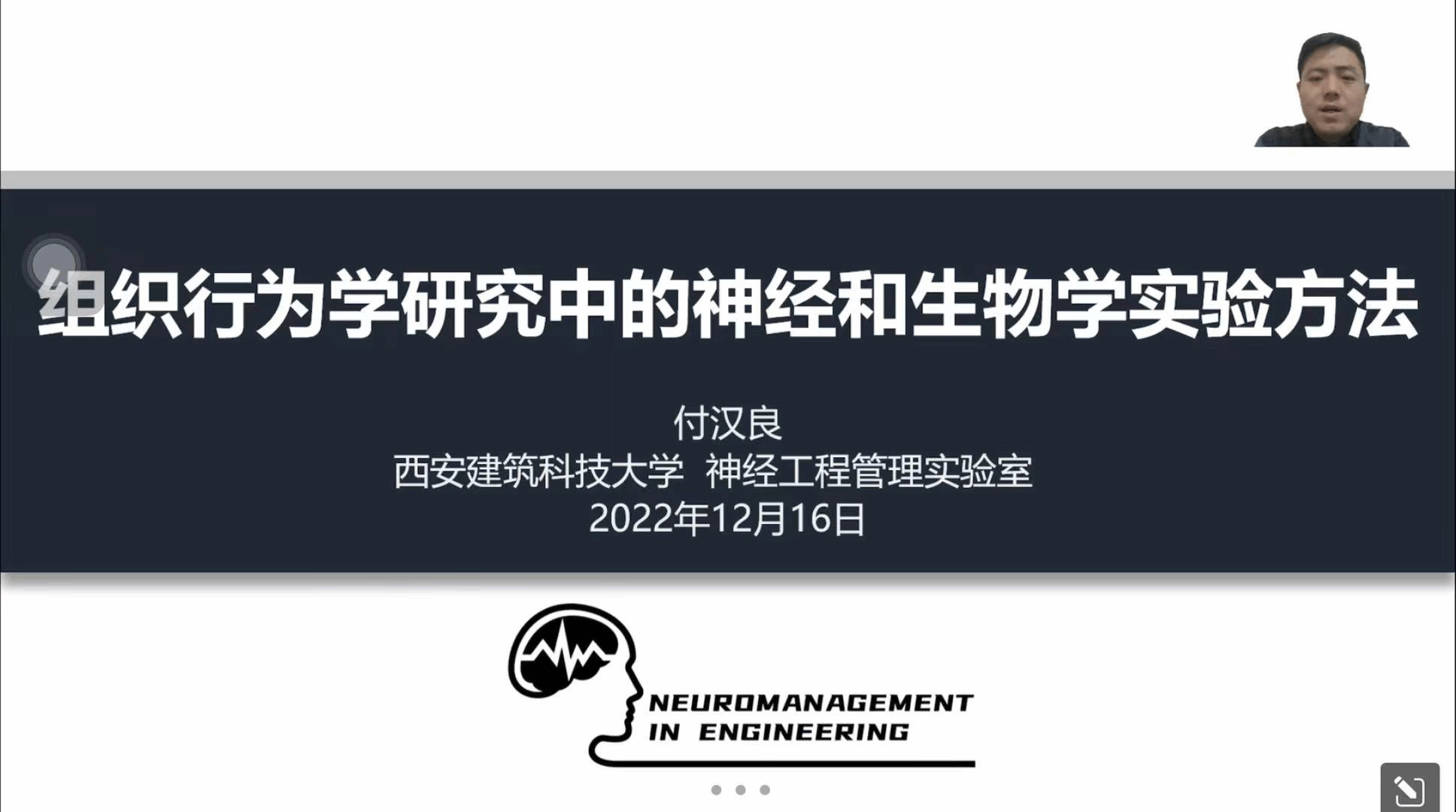 付汉良副教授在报告中结合西安建筑科技大学神经工程管理实验室成立以来所开展的神经和生物学实验研究,介绍类似实验方法(眼动实验、脑电实验)如何应用于管理学中的组织行为研究领域。并结合实际实验心得,介绍了关于开展实验研究的利弊,以及如何克服实验过程中的一些常见困难。
