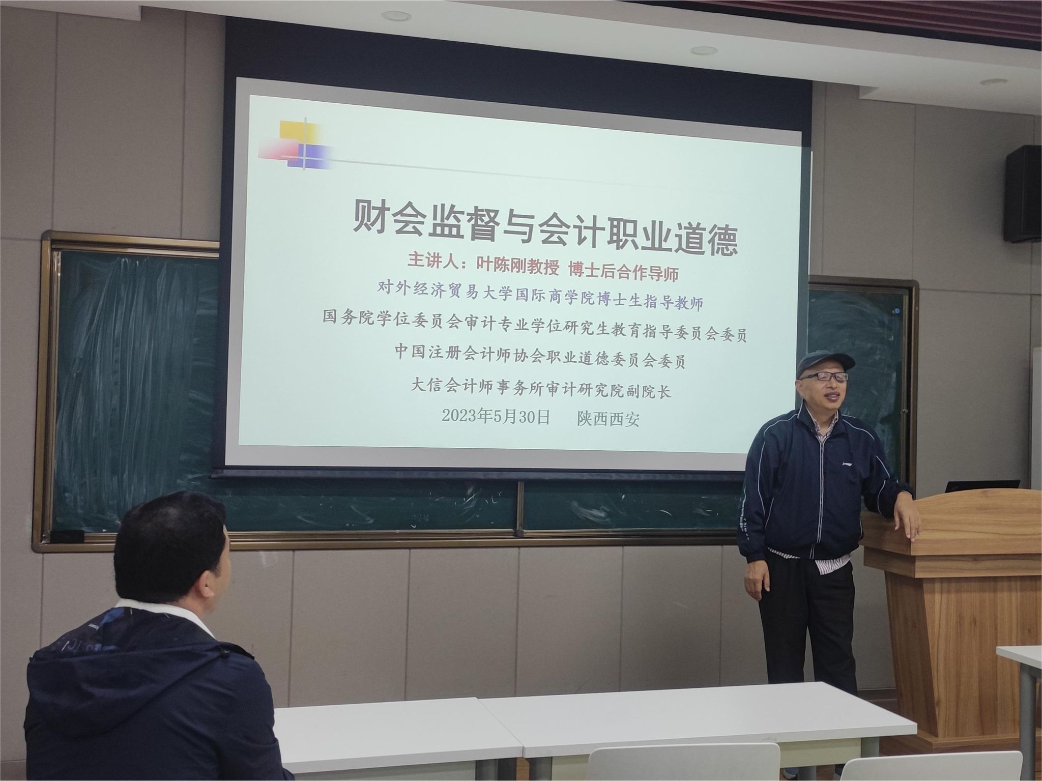 2023年5月31日上午,对外经济贸易大学国际商学院叶陈刚教授于我院214报告厅作了题为“财会监督与会计职业道德”的学术报告。本次报告会由苏坤教授主持,参会人员包括新葡的京集团35222vip教师和研究生。