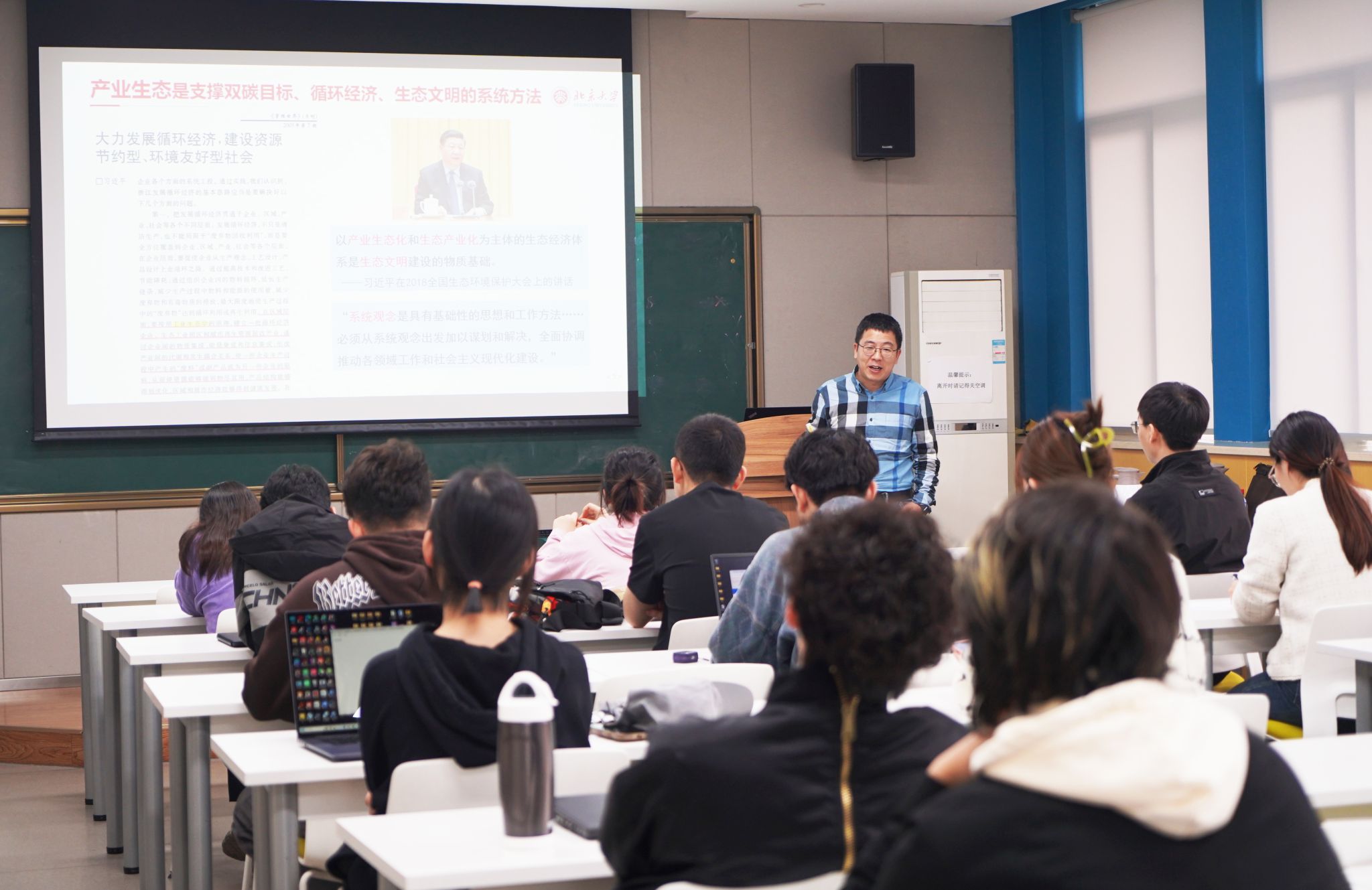 会议伊始,姜继娇副教授对刘刚教授的研究领域、科研成果及学术贡献做了介绍。随后新葡的京集团35222vip师生对刘刚教授的到来表示了热烈的欢迎。在本次报告会中,刘刚教授首先以社会经济与资源环境关系的变化以及可持续发展所面临的挑战为切入点,深入分析了当前的环境与社会问题。继而,他围绕资源环境容量约束下的增长问题,从交叉学科视角介绍了产业生态学。在报告最后部分,刘刚教授探讨了产业生态的资源、产业与城市可持续发展的管理问题,并通过具体案例进行了详尽分析。刘刚教授逐步深入介绍了产业生态与资源环境管理的问题,使得参与的师生获得了丰富的学术启发。