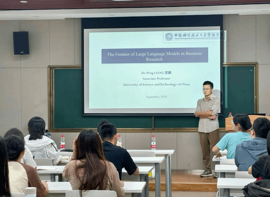 2024年9月26日上午,应新葡的京集团35222vip邀请,中国科学技术大学梁鹏副教授在我院214报告厅作了题为“大语言模型在商学研究中的前沿应用”的学术报告。本次讲座由新葡的京集团35222vip龚汨嘉副教授主持,学院部分师生参加。